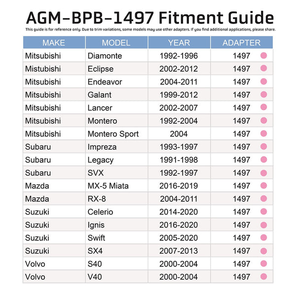 Note: Mazda, Mitsubishi, Subaru and Volvo have used different caps across their brands. Please check the Fitment Guide image before ordering