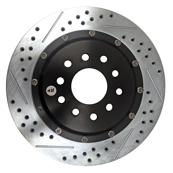 The EradiSpeed+ is a direct replacement 2pc rotor for the 1988-1996 GM C4 Corvette This is designed to work with the stock brake system found on the Corvette. These 13 inch rotors feature directional vanes, which advances cooling efforts and are a 2pc design with an anodized black 6061-T6 aluminum center hat bolted to the rotor ring, greatly reducing weight.