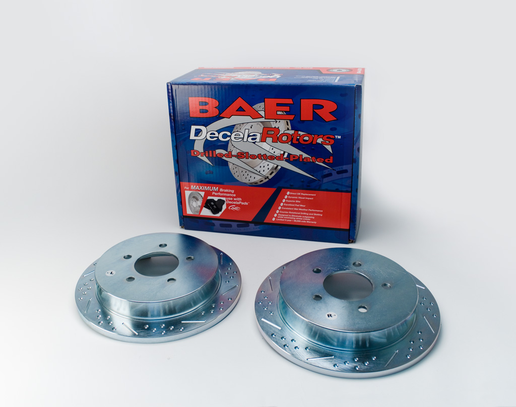 The Sport Rotor is a direct replacement 1pc rotor. This is designed to work with a wide variety of Ford and Lincoln applications. These stock size rotors feature Baers signature slot, drill, zinc plate finish.