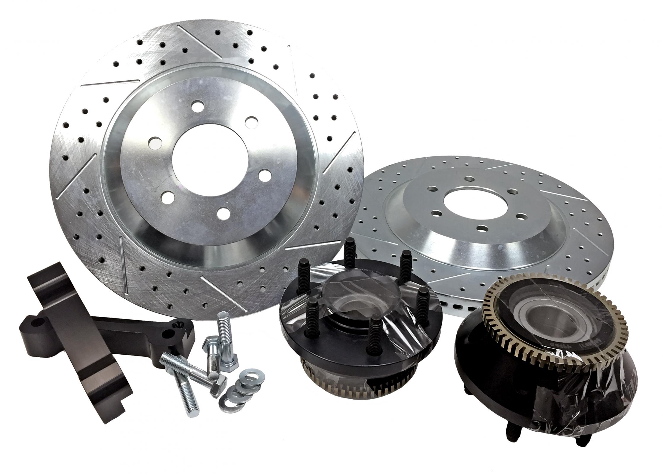 15 inch 1pc slot, drill, zinc rotors, brackets, new hubs, and hardware