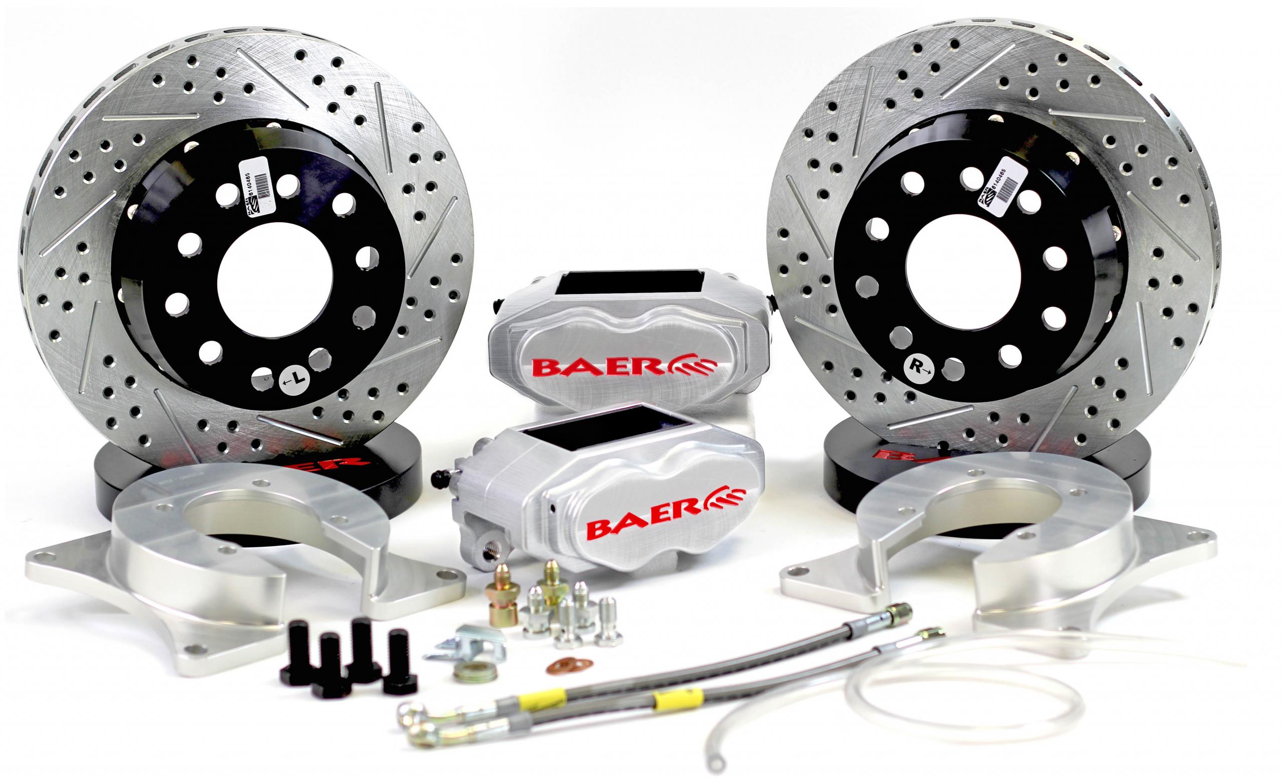 This rear system is designed as a Drag Race only part, and features 4 S4 4-piston calipers mounted to a 11 inch x 1 inch directional, 2-piece slot, drill, zinc plated rotor. There Is NO Park Brake In This System! This is designed specifically for heavy, fast drag cars that rely on their brake to launch or stage the car. The rear systems are specific to the housing end being used, if you are unsure of what ends you are working with please contact us direct. Note: Your axle flange will need to be turned down to 5.75 inches for this system to work. These systems are available in a variety of piston sizes. The larger piston area, 1.75 inches, will provide maximum clamping force, but can cause long pedal issues due to large volume requirements. A smaller 1.375 inch piston option was introduced, and has been a very popular option in classes such as NMRA True Steet where the cars will see limited street use. These rear systems are designed for racing only. If used on the street, due to brake bias change, be sure to spend some time to make sure adjusted correctly. Note: This system comes equipped with a high friction pad that is optimized for drag race applications. These pads often produce more dust and noise.