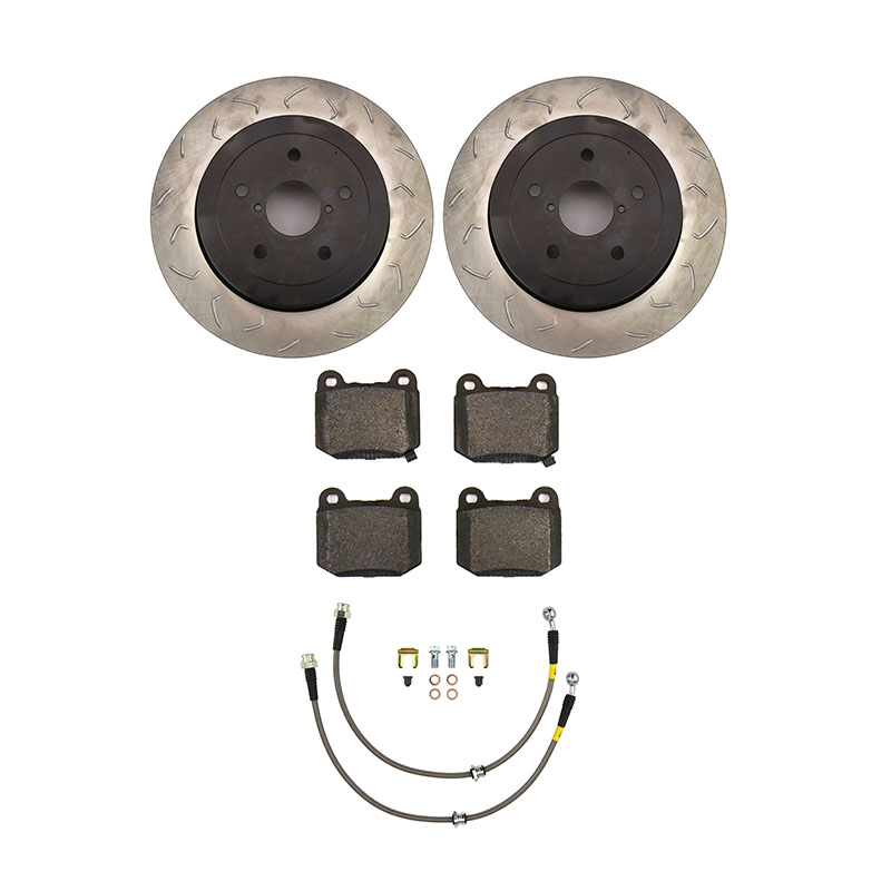 This kit includes new rotors, brake pads, and stainless steel brake lines to improve the braking performance of your vehicle. Rear location Factionfab Swept Slot Bi Directional Rotor Pair Rear