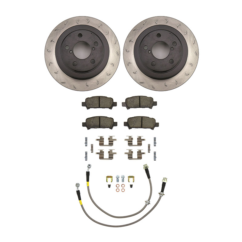 This kit includes new rotors, brake pads, and stainless steel brake lines to improve the braking performance of your vehicle. Rear location Fitment Note: For all 02/03 WRX owners, please verify pad Fitment before purchase.