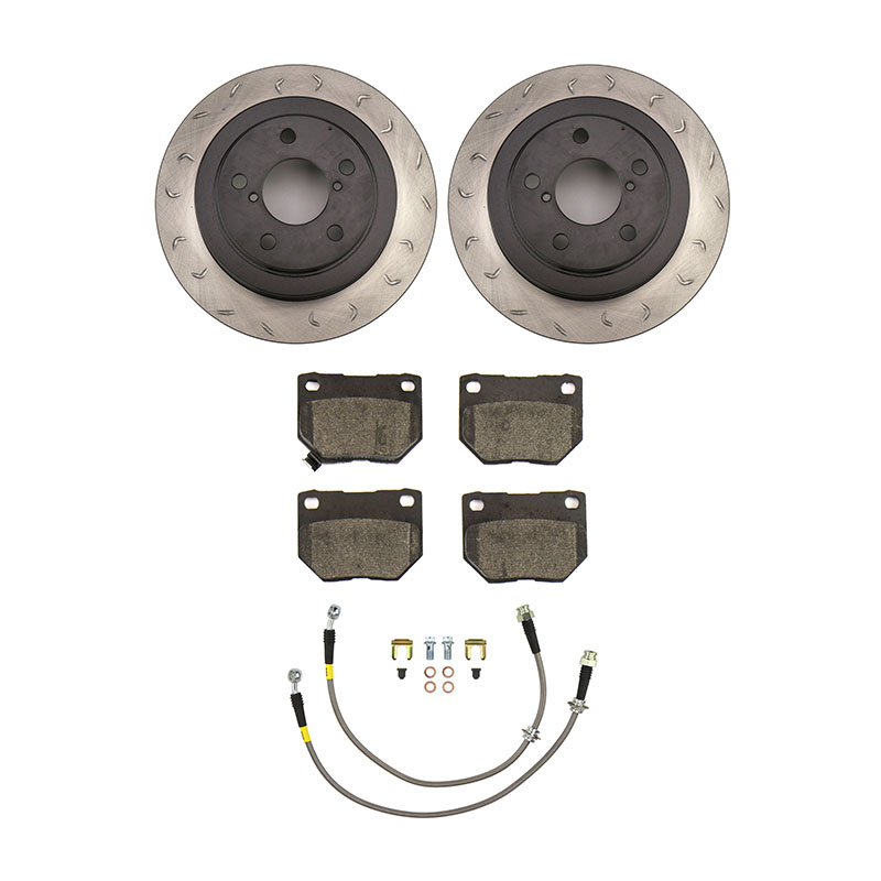 This kit includes new rotors, brake pads, and stainless steel brake lines to improve the braking performance of your vehicle. Rear location Factionfab Swept Slot Bi Directional Rotor Pair Rear
