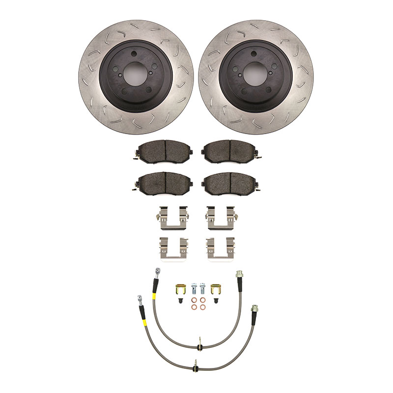 This kit includes new rotors, brake pads, and stainless steel brake lines to improve the braking performance of your vehicle. Rear location Factionfab Swept Slot Bi Directional Rotor Pair Rear