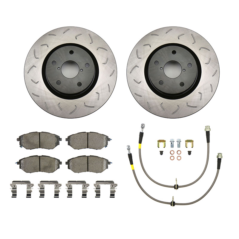This kit includes new rotors, brake pads, and stainless steel brake lines to improve the braking performance of your vehicle. Front Location Factionfab Swept Slot Bi Directional Rotor Pair Front