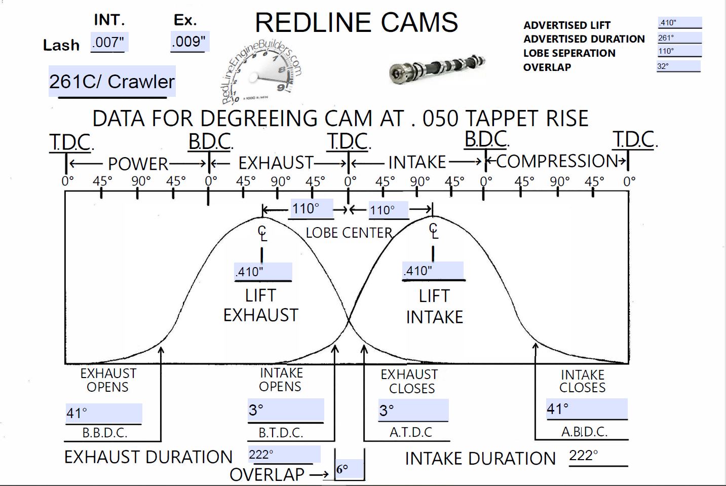- The 261C/Crawler cam is a nice high torque cam for a 4x4. It adds 12 degrees duration and 10 thousands lift over a stock cam.