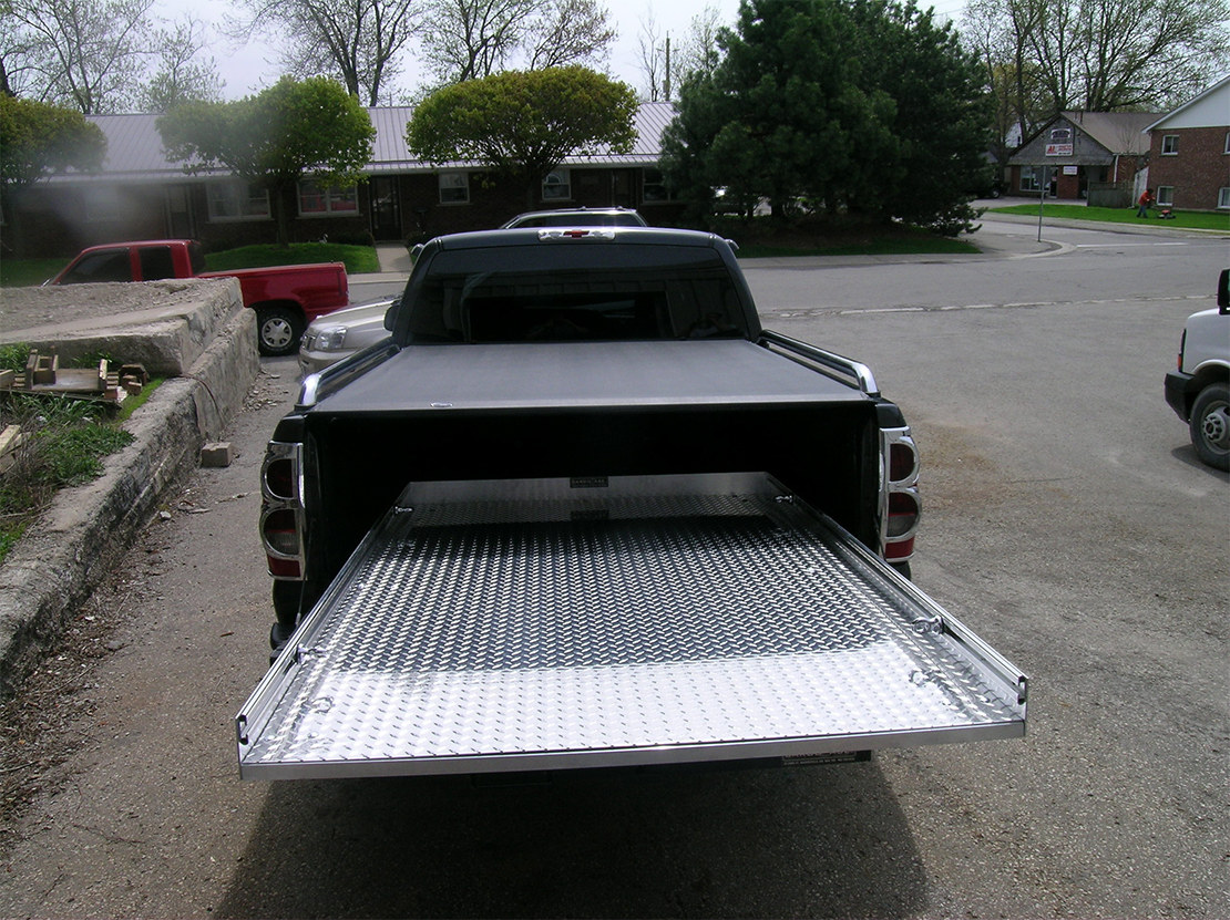 Aluminum Diamond Deck Option For Cargo Slide. This is one of the many options that can be added to your Cargo Bed Slide when you order it from the Cargo Ease Factory.