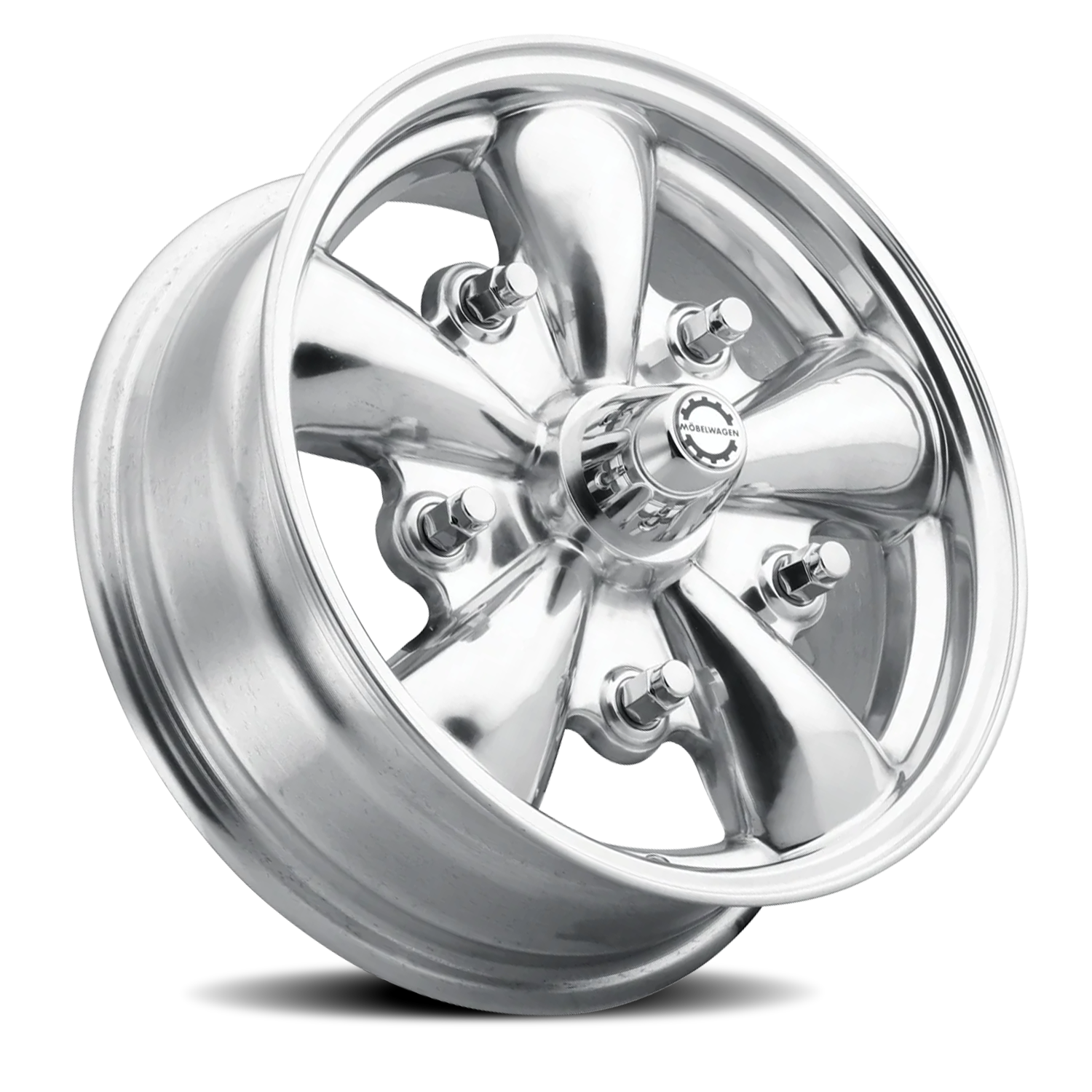 - Available in gloss silver or satin black with machined center or full polished finishes with laser engraved Mobelwagen logo