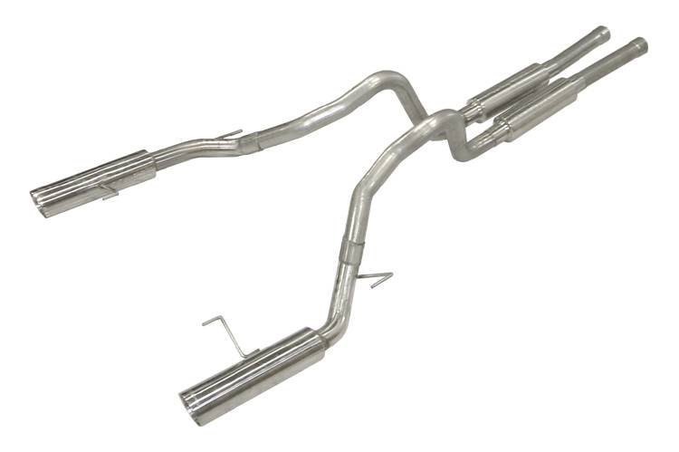 This kit combines the first mid muffler system for the 05-10 Mustang with the hottest axle-back on the market The Pype Bomb. This system is recommended for any Mustang that has a Supercharger, cam, LT headers or aftermarket X or H pipe added. Also works on stock setups.