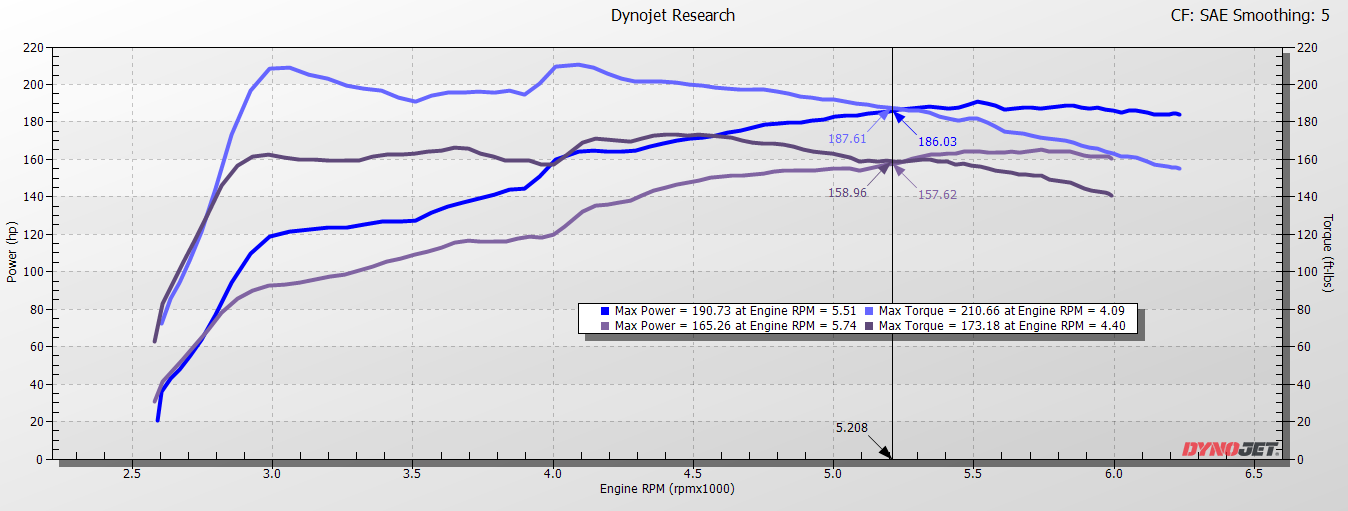 From the factory the Honda Civic (Sedan and Hatchback) is rated at 180 flywheel horsepower. After installing our TruControl by STILLEN Inline Power Module the dyno reported back a maximum wheel numbers of 190 horsepower(+25 whp) and torque exceeding 213 foot pounds(+40 wtq). Making the wheel horsepower greater than the factory flywheel horsepower.