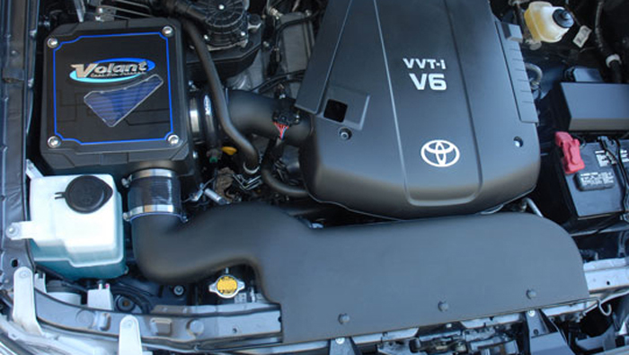 Volant air intake systems utilize a high-velocity venturi filter adapter which provides a smooth transition through the MAF sensor into the intake tube for a much needed airflow improvement over the factory rubber tubing and resonator box.