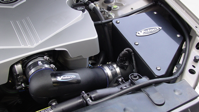 Volant air intake systems utilize a high-velocity venturi filter adapter which provides a smooth transition through the MAF sensor into the intake tube for a much needed airflow improvement over the factory rubber tubing and resonator box.