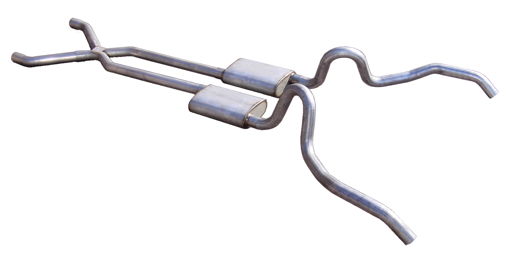 Crossmember Back w/X-Pipe Exhaust System 62-67 Nova Split Rear Dual Exit 2.5 in Intermediate And Tail Pipe Violator Mufflers/Hardware Incl Tip Not Incl Pypes Exhaust