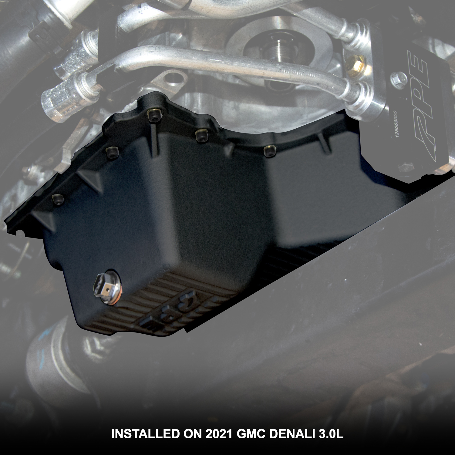 In our testing on the LM2, we observed an increase in oil capacity from 7 quarts with the OE GM oil pan and filter to 9 1/2 quarts with the PPE Heavy-Duty Deep Oil Pan and PPE Premium Oil Filter 114000650.