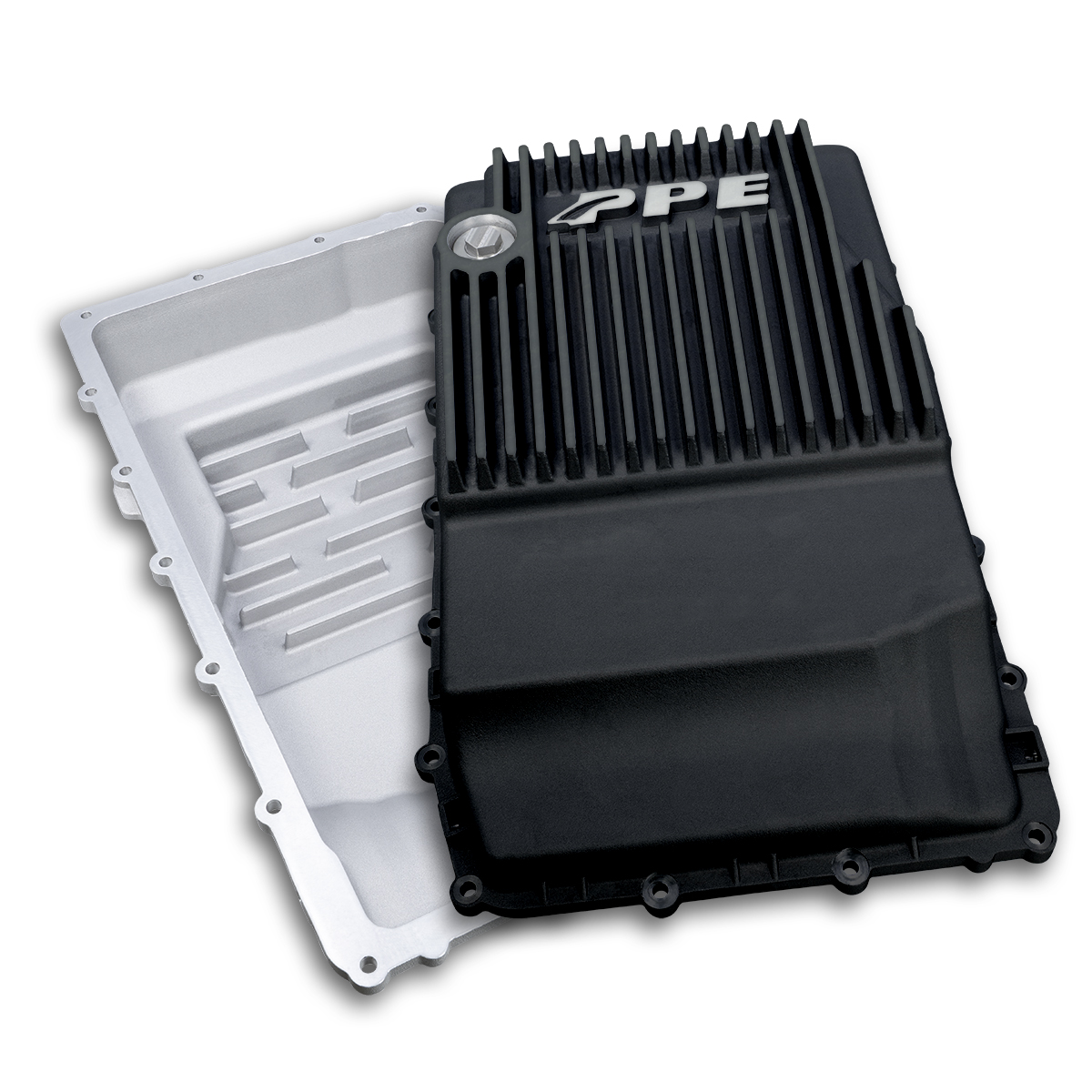 PPE's cast aluminum pan provides superior cooling over the stock, plastic pan. The PPE Pan's cast-aluminum construction with exterior fins helps transfer heat away from transmission internals. Lower transmission fluid temperatures extend transmission life. The PPE Heavy-Duty 10R80 Transmission Pan also features our high-power Neodymium magnet-equipped drain plug to keep harmful ferrous metal contaminants out of the transmission internals.