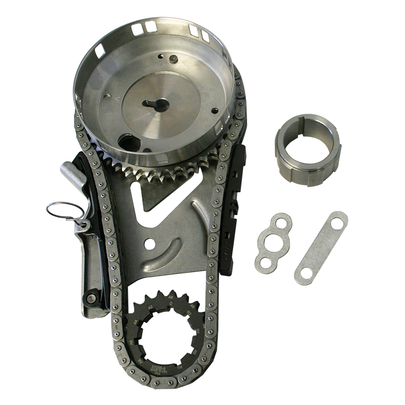Billet Steel Chry 5.7L - 6.1L Hemi 9-Keyway Timing Set These pro billet competition timing sets are designed for accuracy and long life. Lightweight by design these sets feature a CNC machined billet steel cam sprocket with lightening holes, a heat-treated crank sprocket with 9-keyways and a black oxide coating. The chain is a large .250” diameter seamless roller. Most sets include a press fit roller thrust bearing. Note: No machining required.