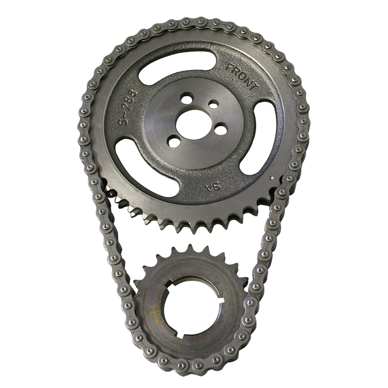 Double Roller Chevrolet 265-400 3-Keyway Double Row Timing Chain Set These 3 piece timing sets are hand matched for quality and reliability. Features a premium double roller chain for extended life. Cast iron cam sprocket and a 3 keyway crank sprocket offers a +4°, 0°, -4° cam adjustment.