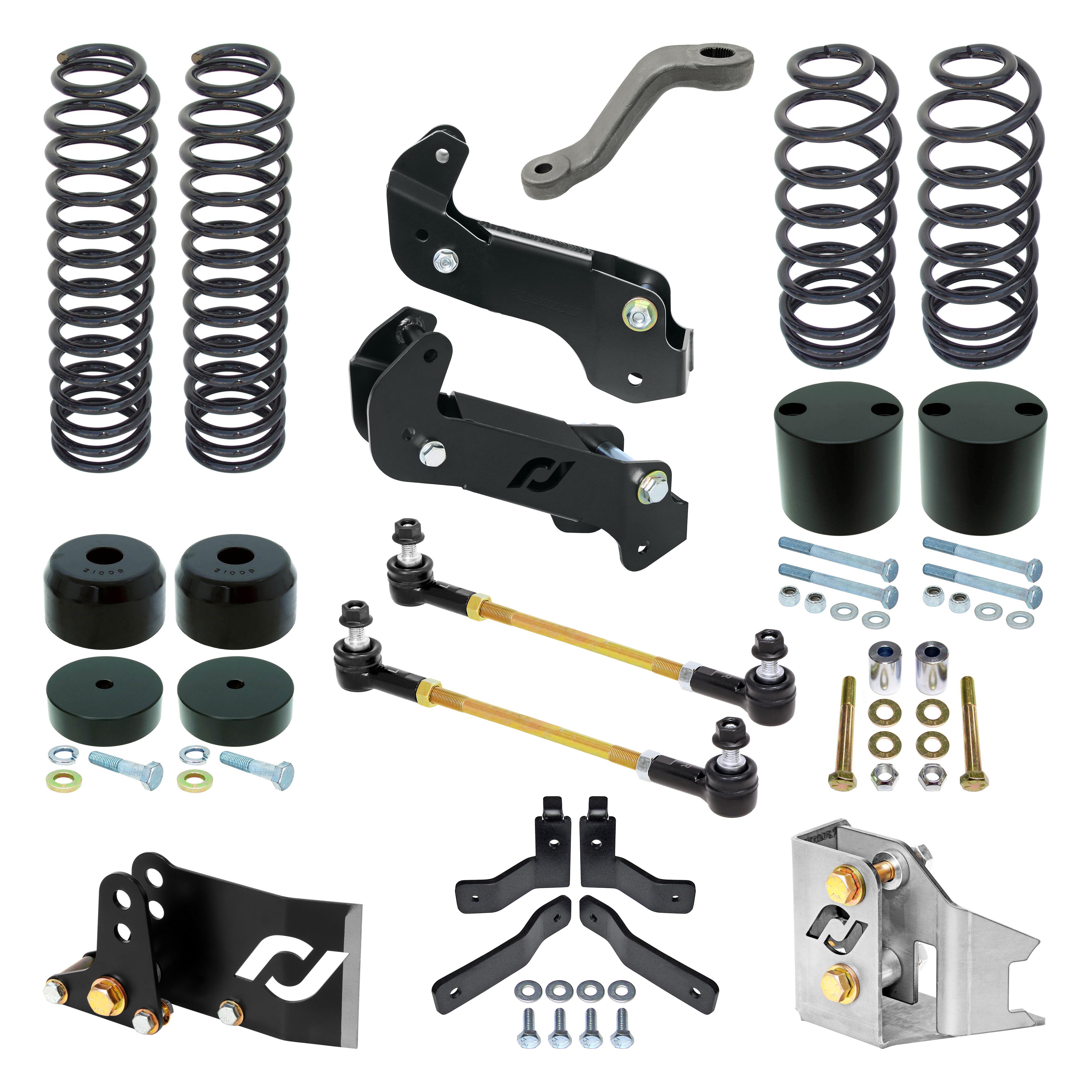Included in this kit are geometry correction brackets that will restore drivability to stock feel after lifting, so everyday driving we be just as pleasurable as it was before the lift, a set of 4 progressively wound coil springs, front and rear bump stop kits, front and rear brake line relocation bracket kits, front and rear trac bar geometry correction kits, relocation kit for the bottoms of the rear shocks, extended sway bar links and a dropped pitman arm.