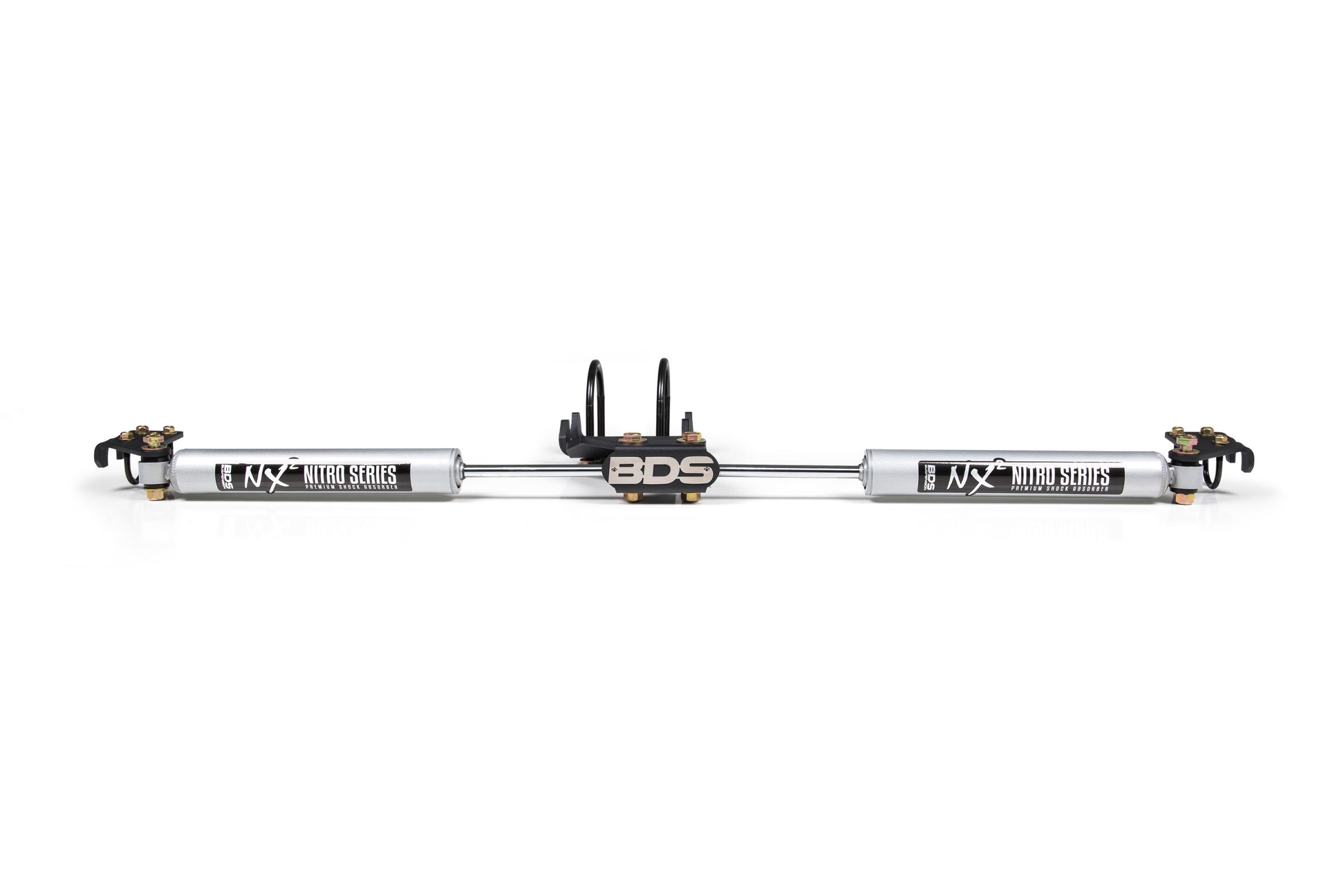 Enhance the handling of your 2005-2024 Ford F250 and F350 Super Duty 4WD by installing a BDS dual steering stabilizer mounting kit with NX2 shocks.