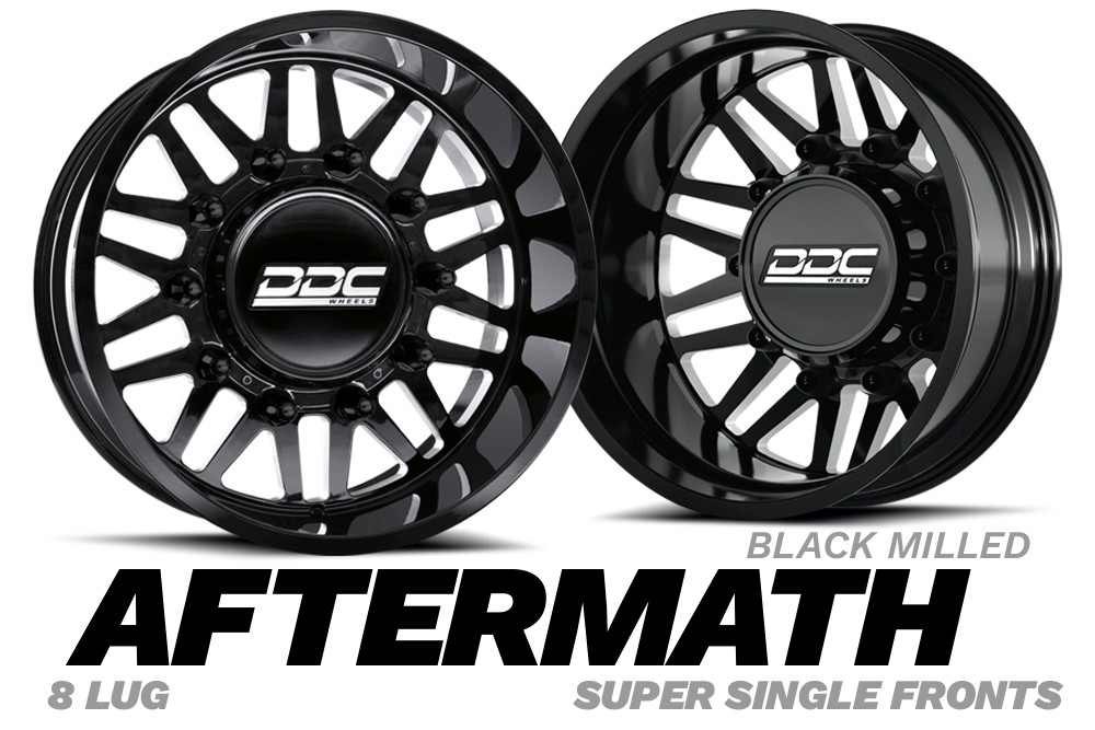 Dually Wheels Aftermath Black/Mill 22x8.25 8x210 SS Fronts For 11-25 Silverado/Sierra 3500 DDC Wheels