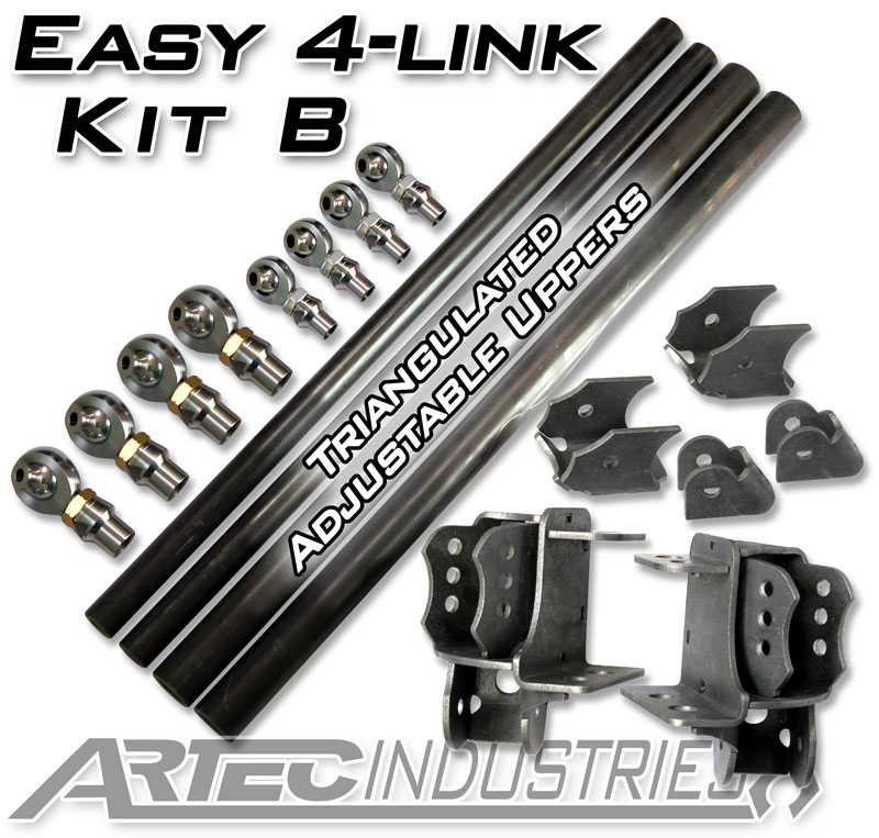 Our Easy 4-Link Kit A is the simplest way to get your links done. This kit is based off our most popular parts we've sold our customers for a single triangulated 4-link with angled upper control arms and straight or very slightly angled lowers. The brackets available in this kit allow for separate upper and lower mounts on the frame side for customizable 4-link setups.