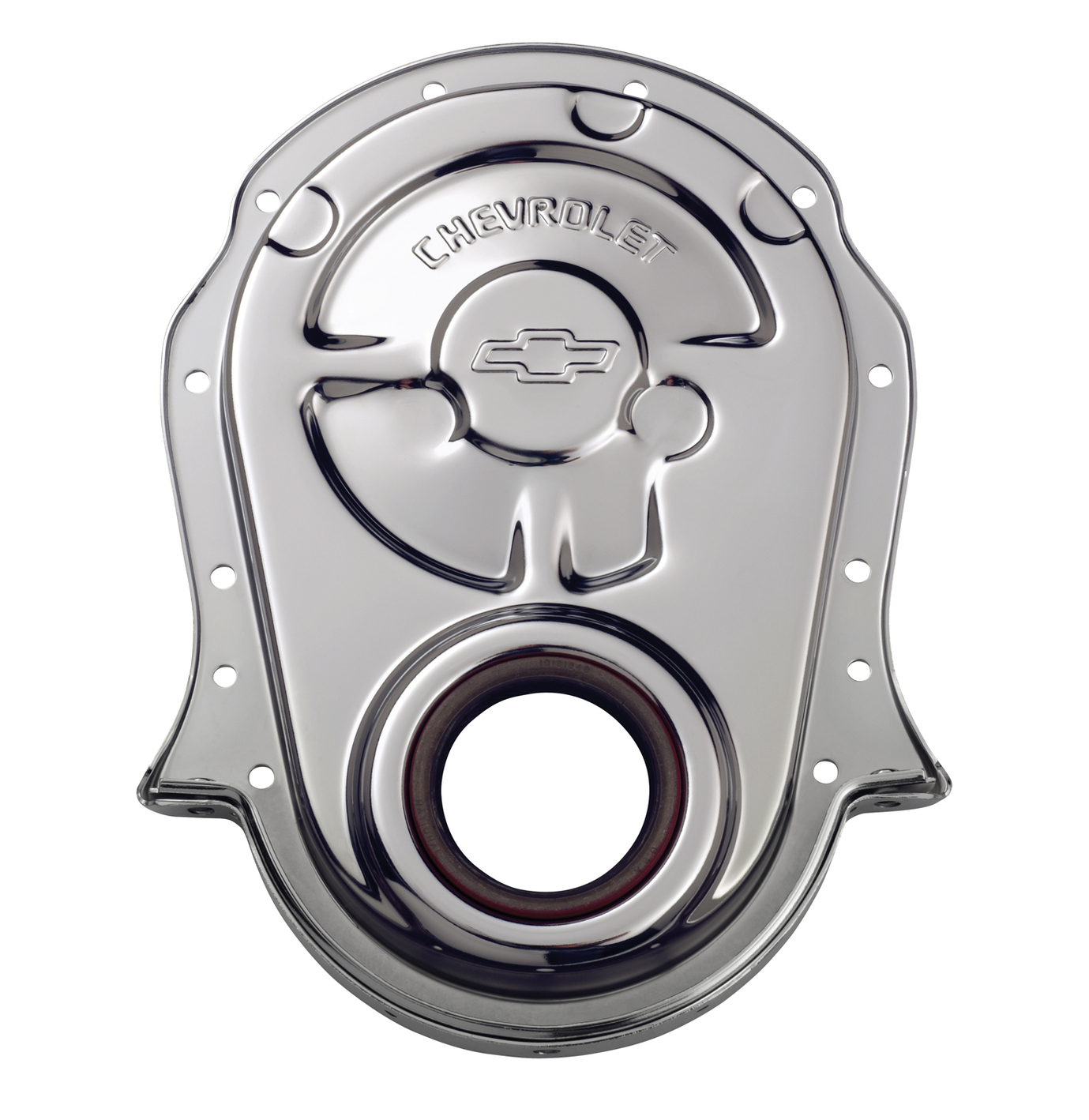 This engine timing chain cover is manufactured from high quality steel material. Features a great looking finish. Designed to fit 1965 to 1990 Big Block Chevy engines. Front crankshaft oil seal is included. This is an officially licensed Chevrolet Performance Parts product. Sold individually.