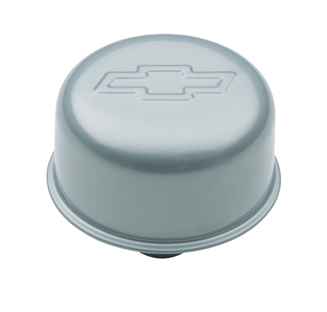 Engine Valve Cover Breather 3 Inch Diameter Bowtie Logo Push-In Style Chrome Chevrolet Performance Parts