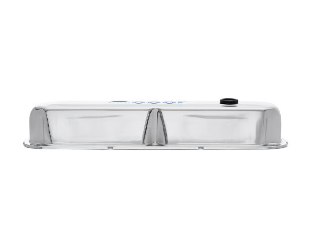 Here's a look that's new, and eye catching! The vintage MOPAR emblem has been stamped into these valve covers, then hand painted with a shade of blue matches engine blocks from the era. Oil restricting baffles are pre-installed. All valve covers are sold in pairs, and come equipped with air breather and PCV grommets, unless specified otherwise.