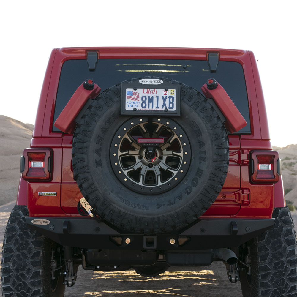 Rock Slide Engineering has designed the EZ License Plate so you can keep your plate visibility when the stock Jeep bumper is removed. Made from 11-gauge Aluminum. The License plate has an adjustable 2-inch strap that mounts to the tire. You can move and manipulate the plate to what position you want it in. We use a state-of-the-art automated powder coat system to for a textured black topcoat. Easy installation!