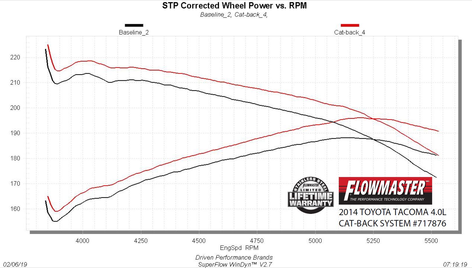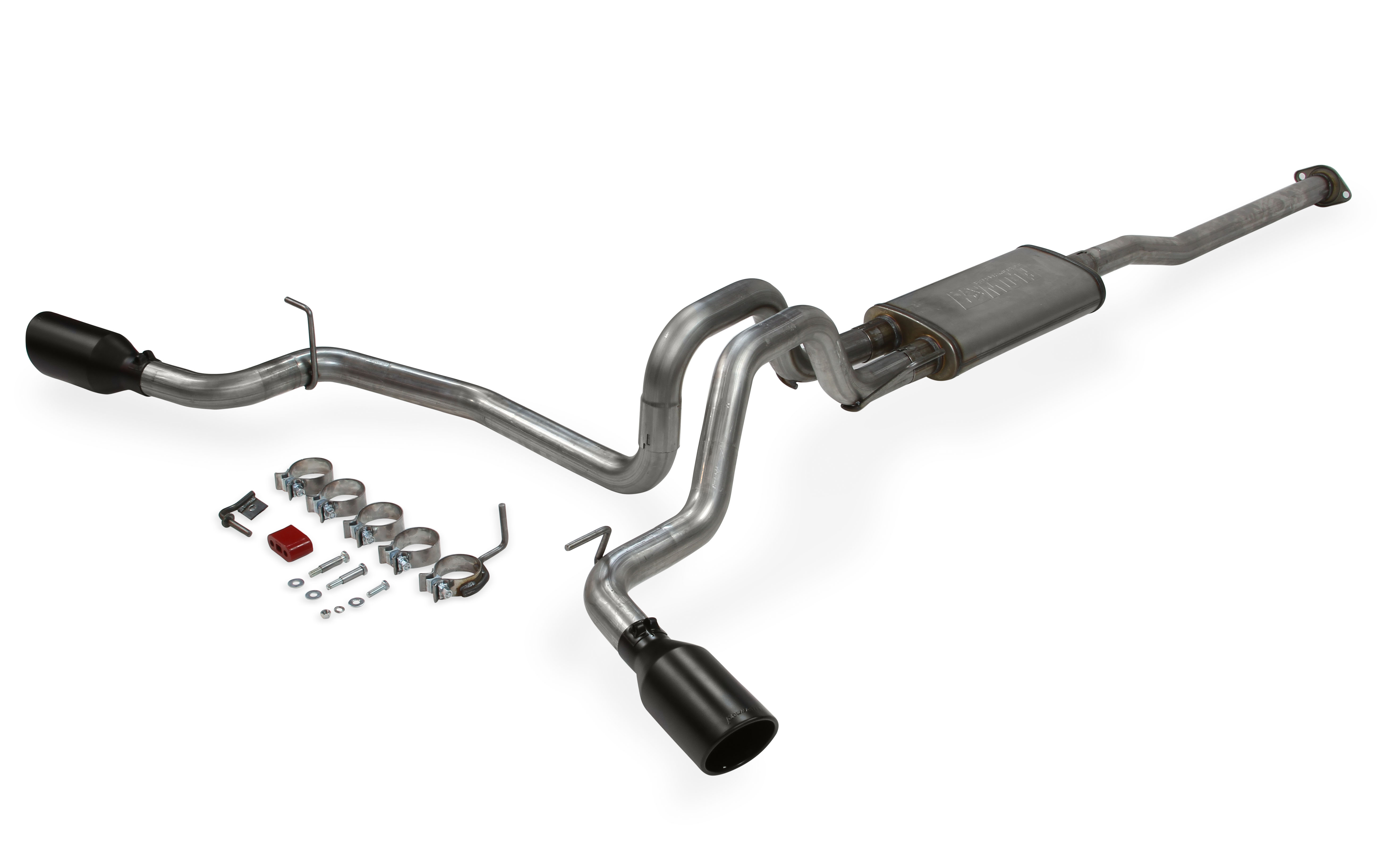 Fits 2005-2015 Toyota Tacoma 4.0L engine, Flow FX stainless steel, dual exit, cat-back exhaust system, 2/4 WD and all Wheelbases. - Moderate sound