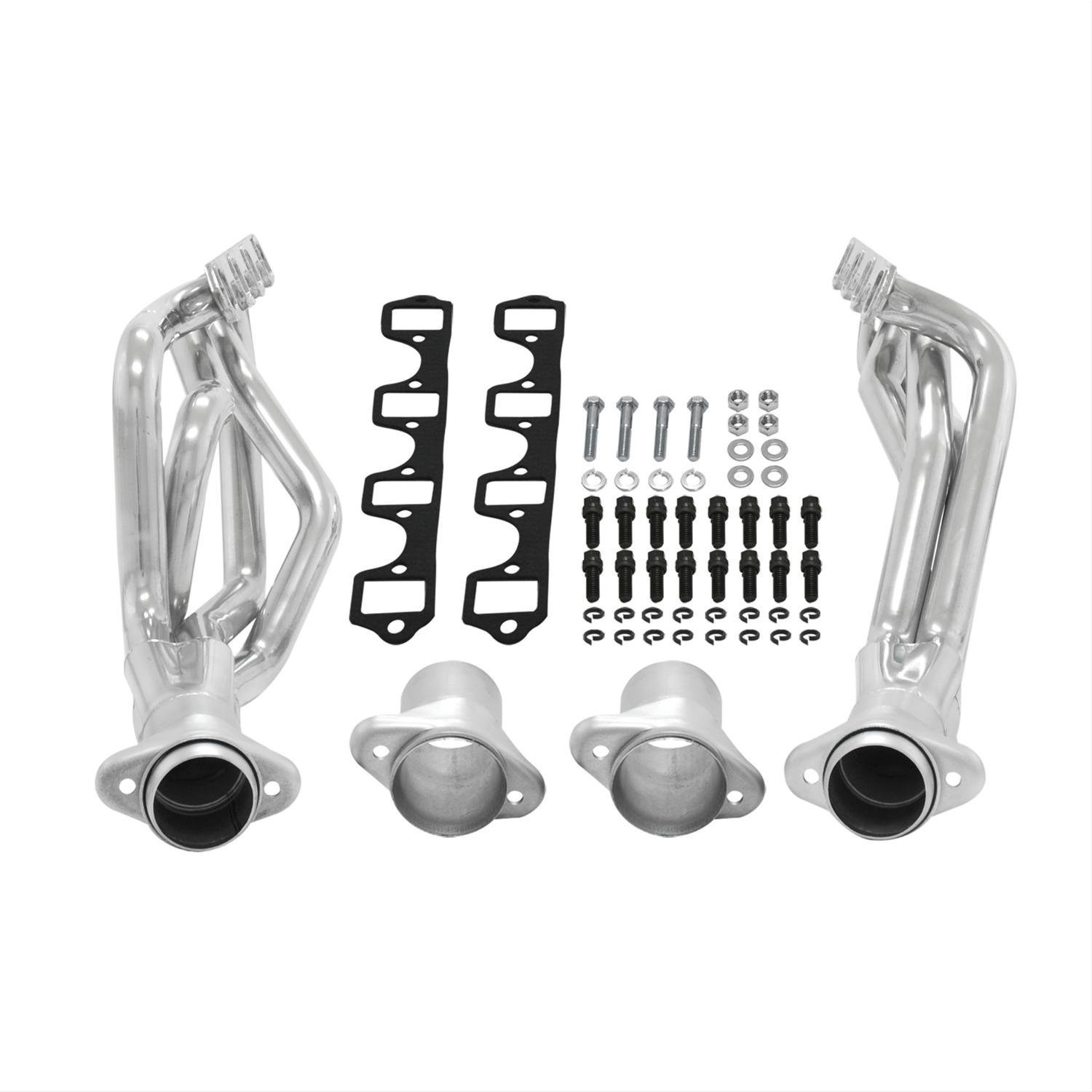 Fits 1964-1973 Mustang, 289-302 SB Engine, V8, Long Tube Headers, 1-3/4"" Primary, 3" Ball-Flange Collector, 16 Gauge Tubing, 3/8"" Flange, Silver Ceramic Coating, 409S Stainless Steel