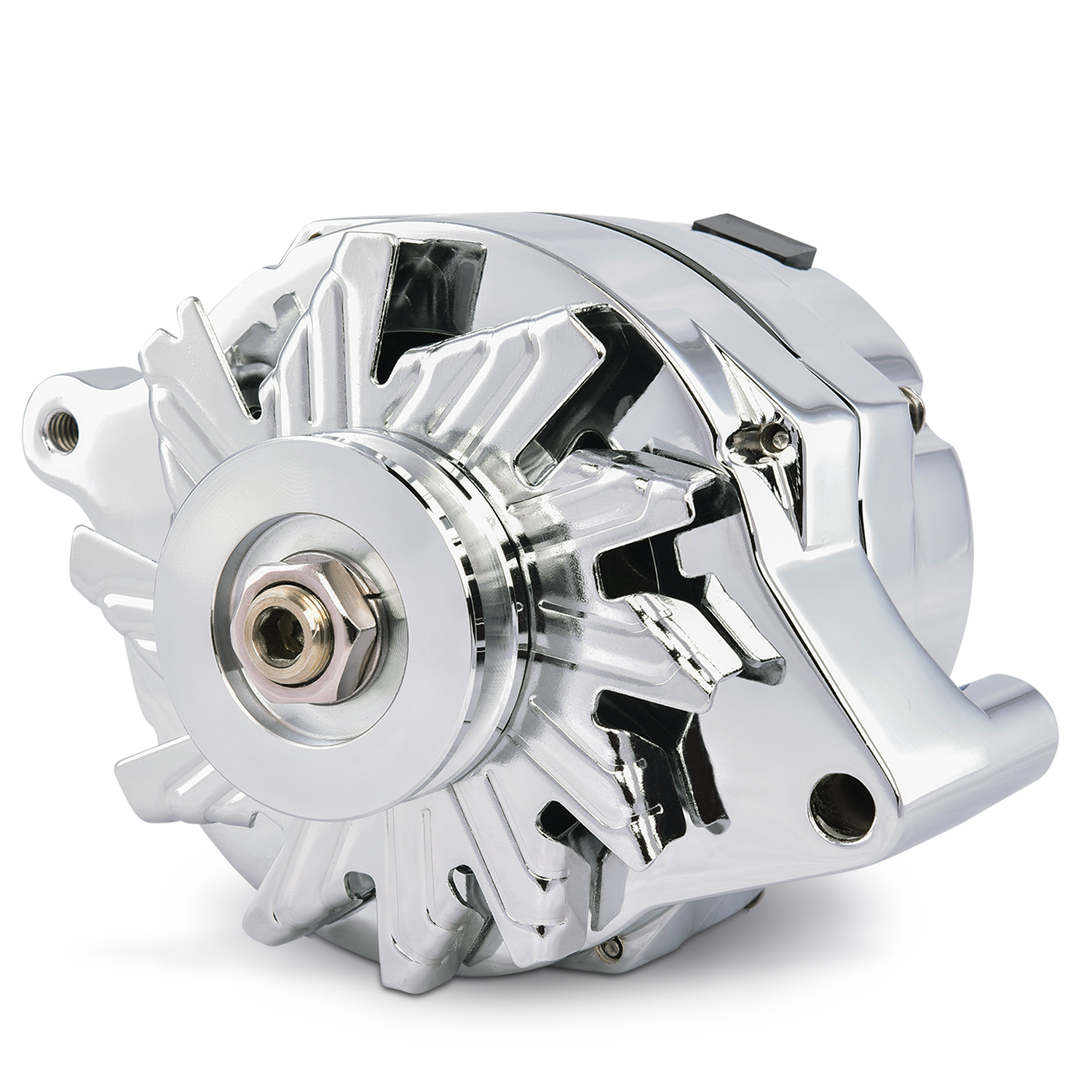 Ford 100 AMP Alternator Chrome Finish 1-Wire GM 10si Style w/ Internal Regulator, V-Pully, and External Fan Proform