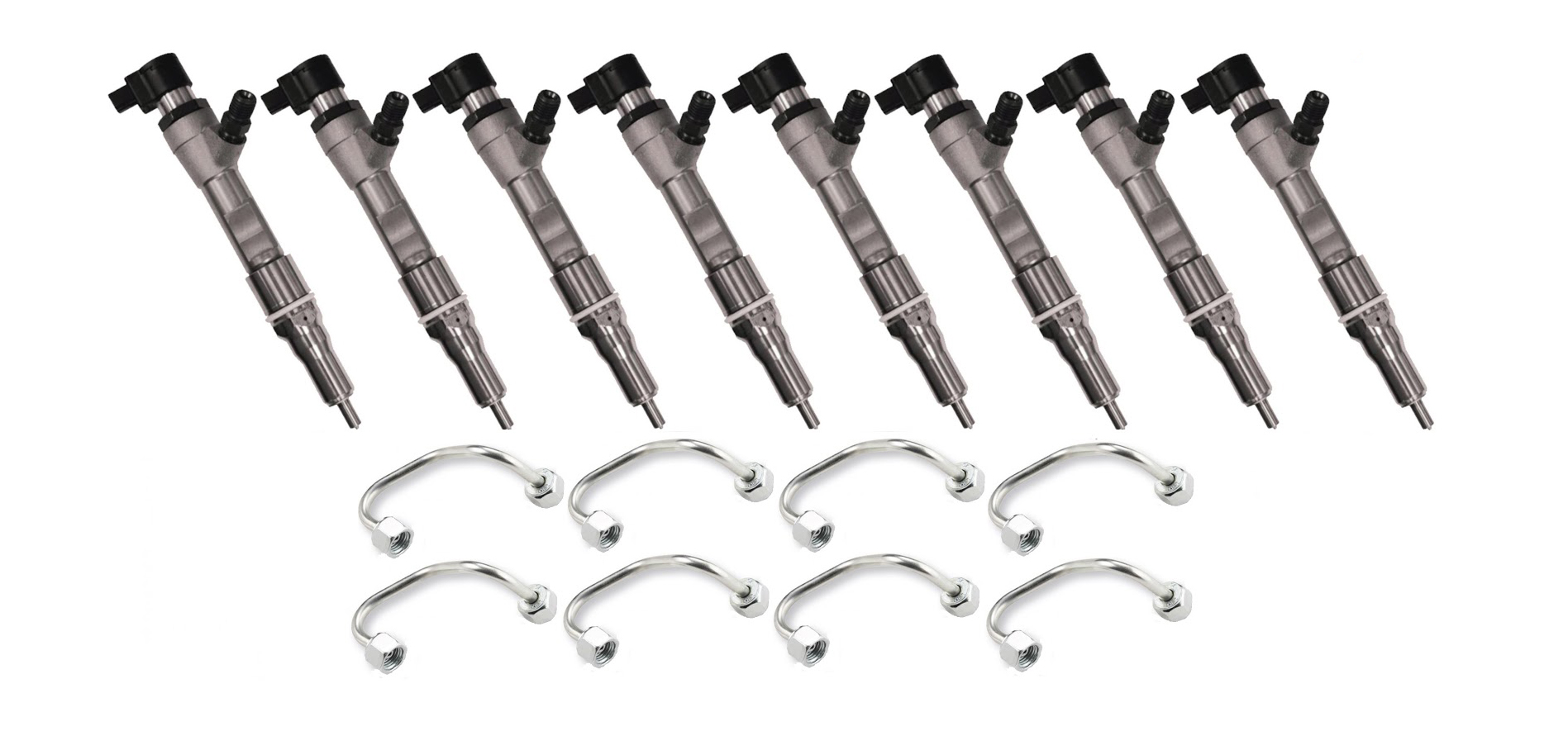 Recommend modified or dual injection pumps as well as custom tuning. Use of pyrometer mandatory. Includes injector line set. Sold as a balanced and matched set.