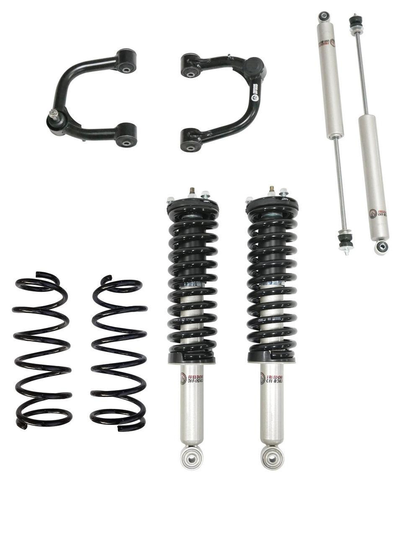 The front lift struts, fully assembled with a new strut, spring, and top mount, are designed to improve your vehicle's performance. Rear coil springs provide lift while maintaining ride quality. The nitrogen-charged rear shocks, with application-specific valving and chromed hardened piston rods, are designed to provide a smoother ride for lifted vehicles.
