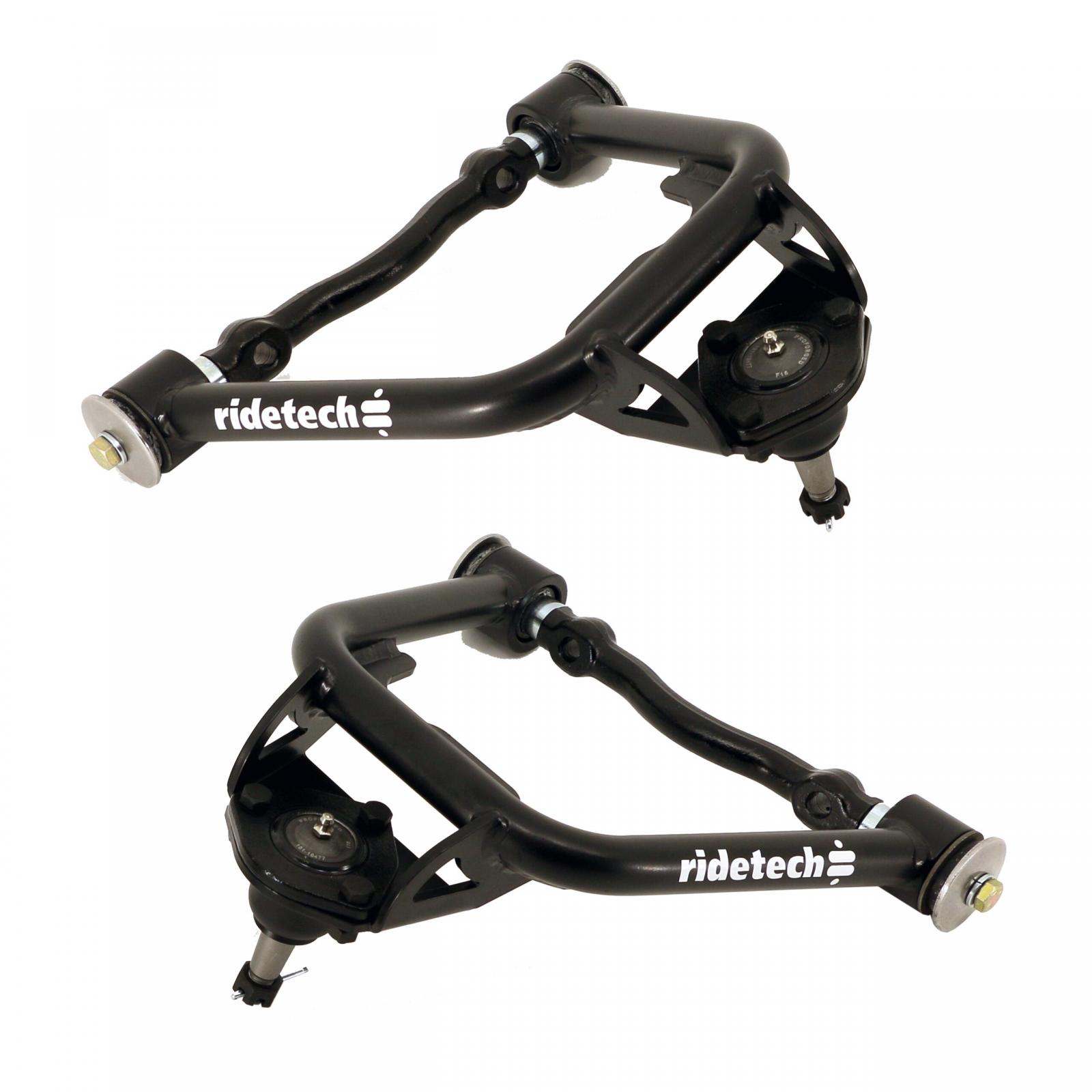 Front Upper Strongarms For 1955-1957 Bel Air Pair Of Tubular Control Arms W/ Tall Ball Joints Cross Shafts And Delrin Bushings Powder Coated Satin Black Ridetech