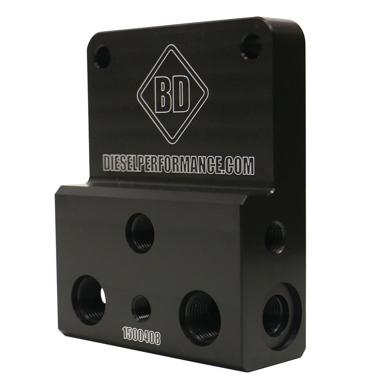 The BD Diesel Fuel Bowl Delete kit is designed to remove the factory fuel filter assembly, and allow the addition of a fuel pressure sensor. The kit can also be used as a distribution block for applications using dual CP3 kits. Please