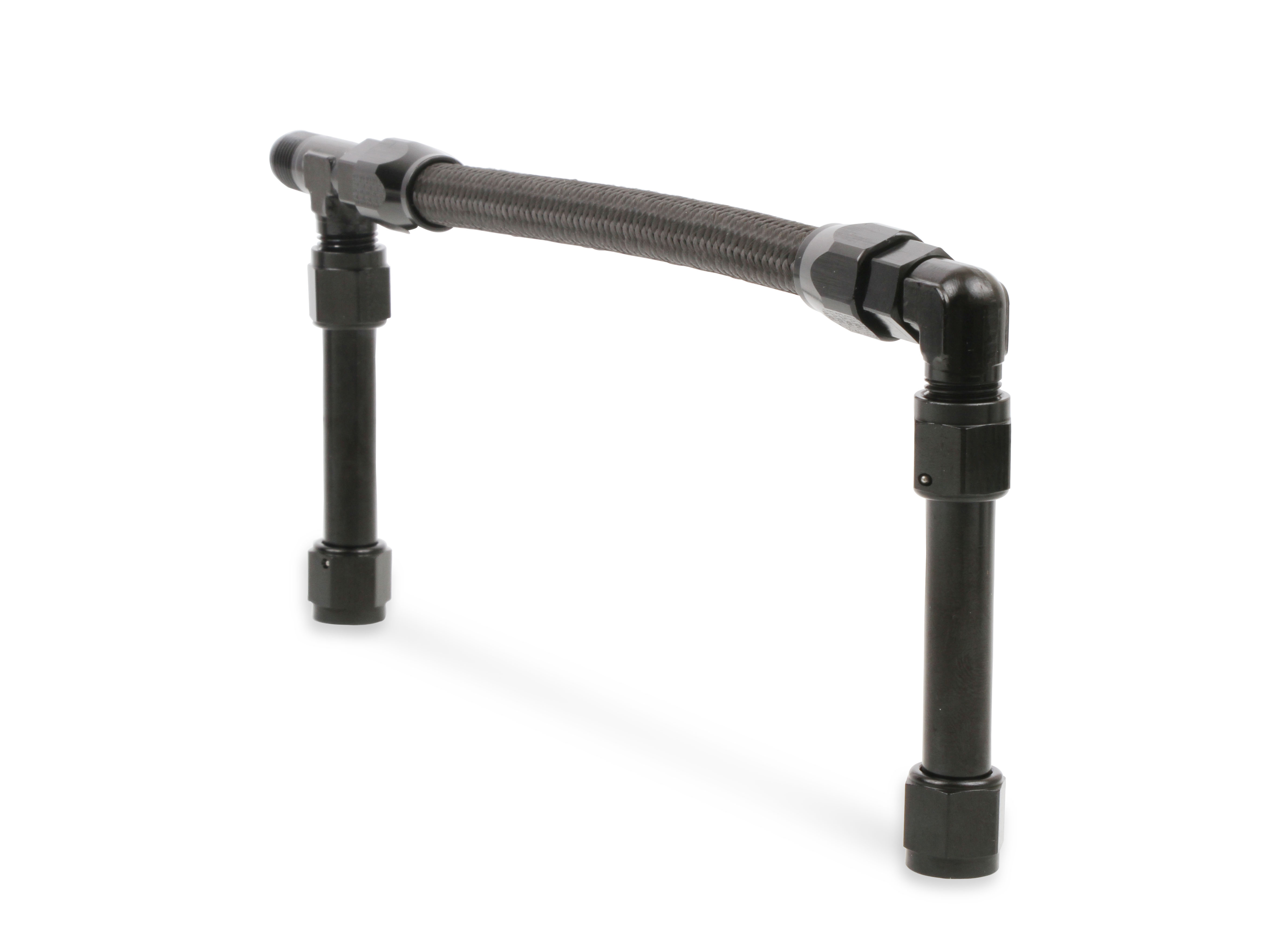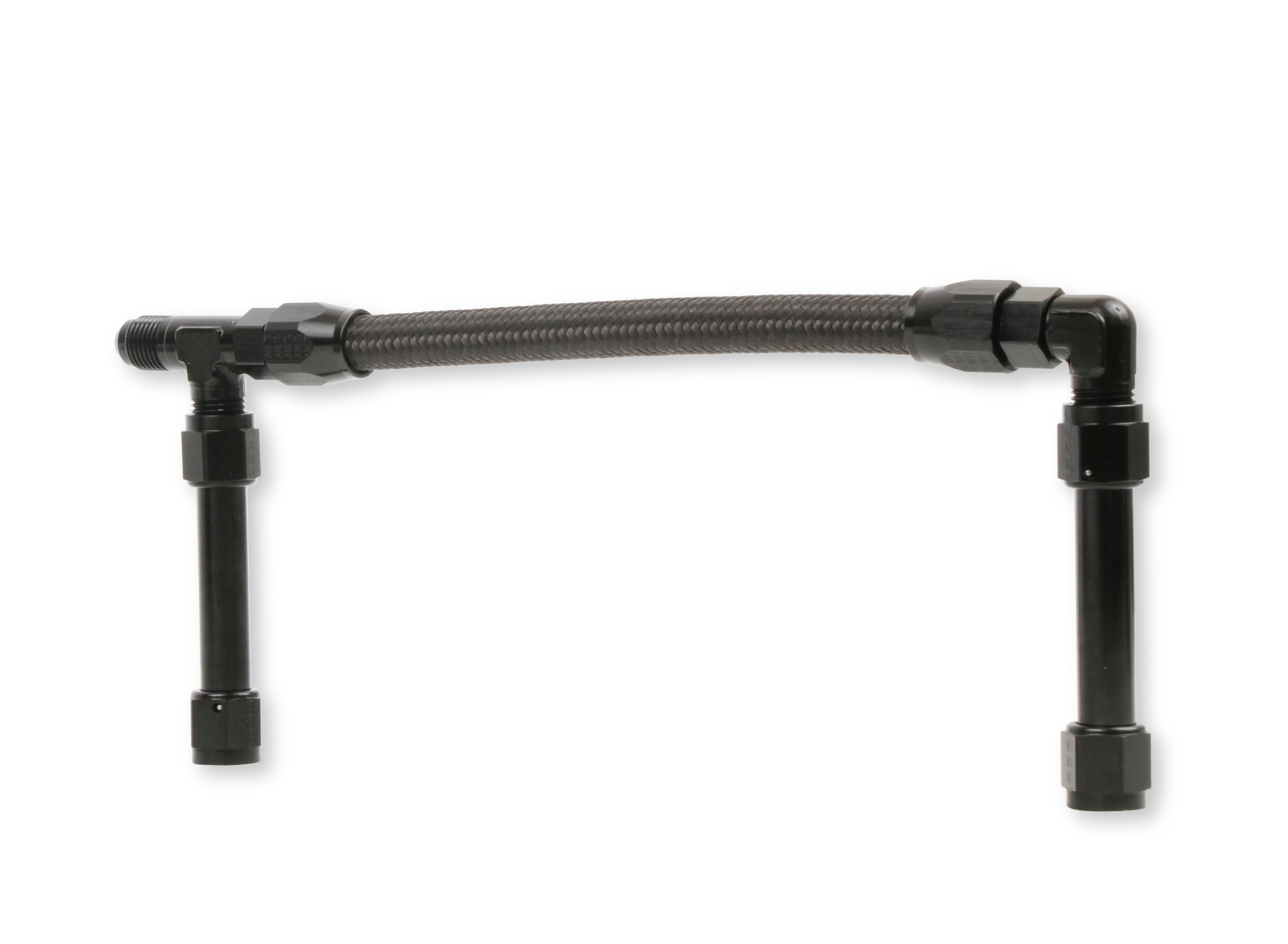 Dual fuel lines for Holley 4150 Ultra XP Carburetors w -8 O-ring XP Bowls. Fuel line with single 8AN inlet, fittings with Pro-Lite 350 hose