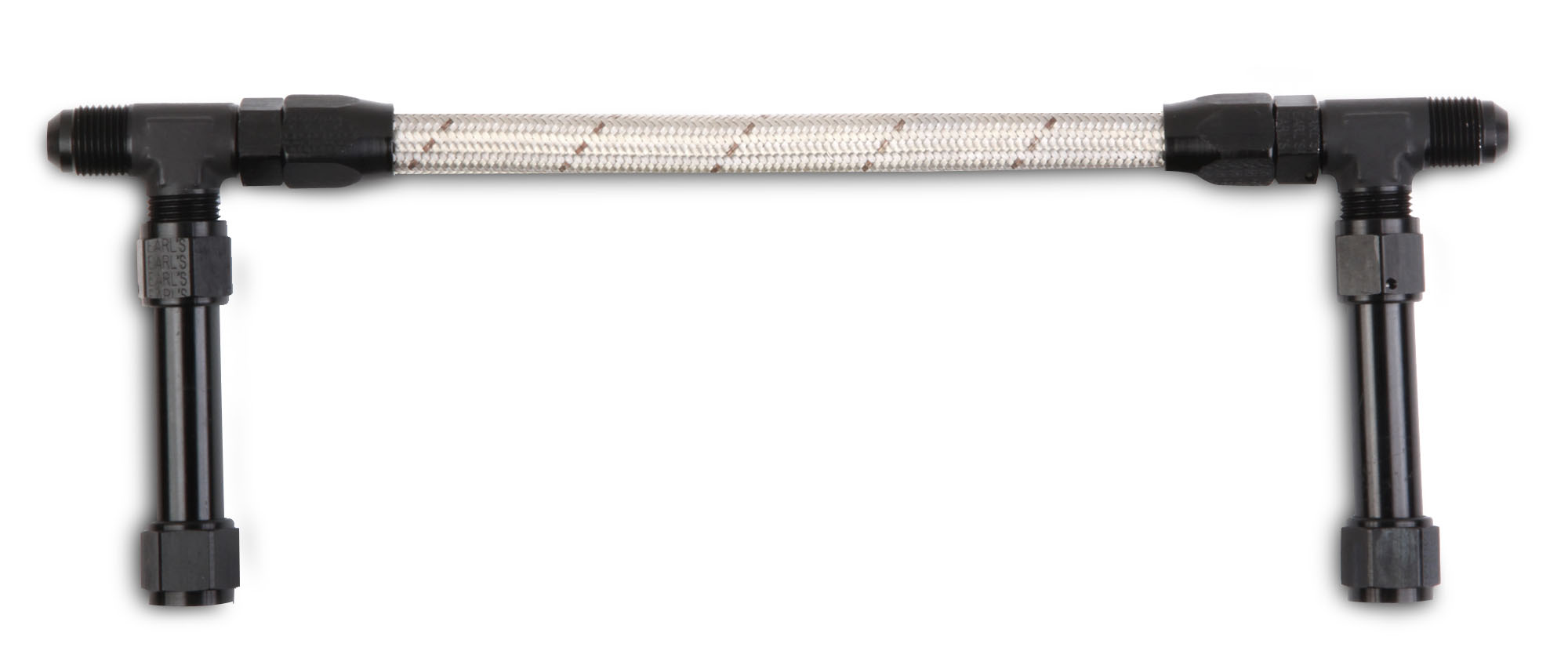Dual fuel lines for Holley Gen 3 Dominator Carburetors w -8 O-ring HP Bowls. Fuel line with dual 8AN inlet, fittings with Stainless hose