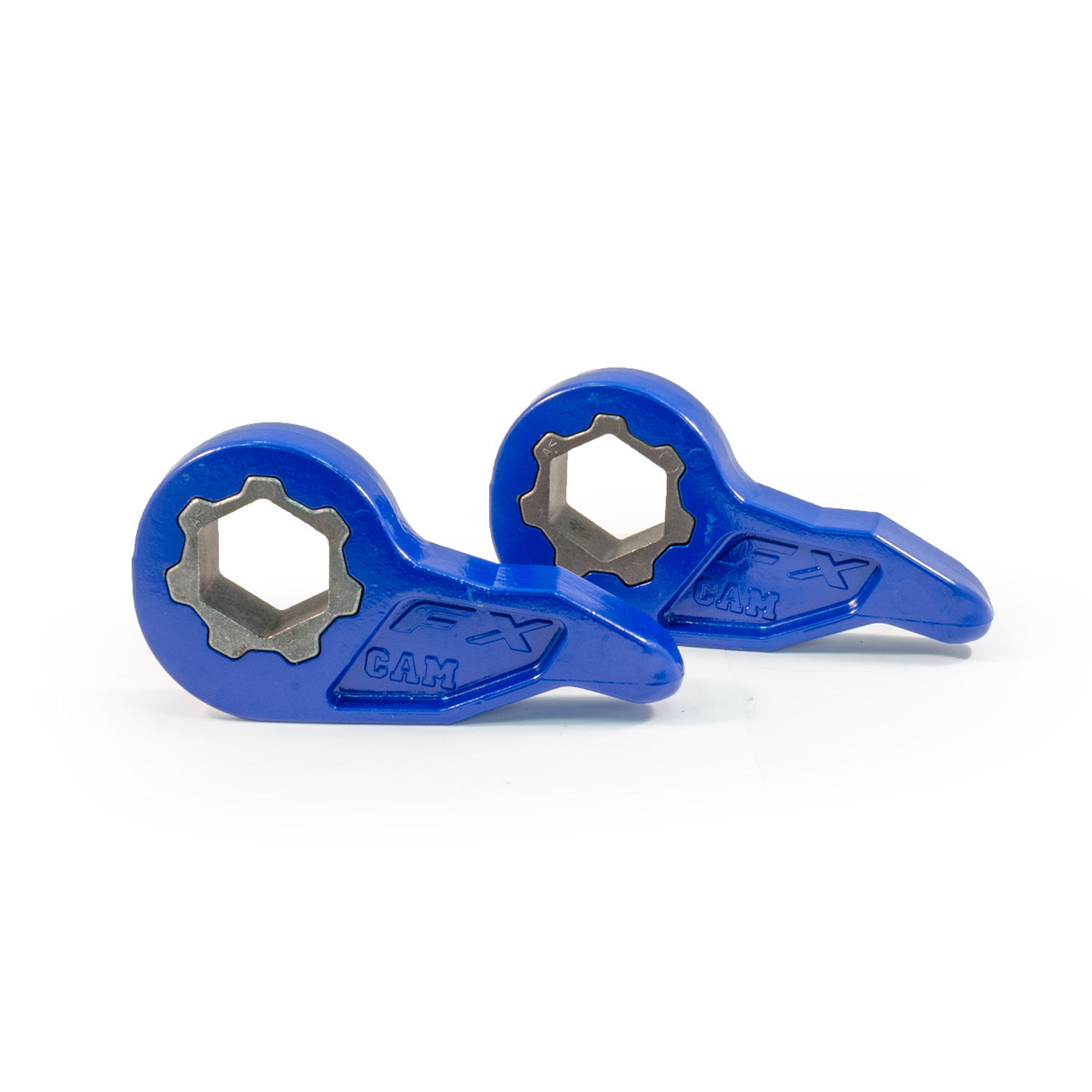 The Patented Maxxcam Fx Cam Is The Only Adjustable Torsion Bar Leveling Kit Available On The Market. FX Cam Increases Vehicle Function While Providing Your Truck With A More Aggressive Look. Like All Products Within The Maxxcam Series, Fx Cam Features Forged Torsion Bar Keys That Utilize An Internal Gear Adjustment Mechanism With Seven Position Settings. FX Cam Can Be Set To Any Amount Of Corrected Height and Degree Torsion Bars Require With No Preload and No Degradation In Handling Or Ride Quality.