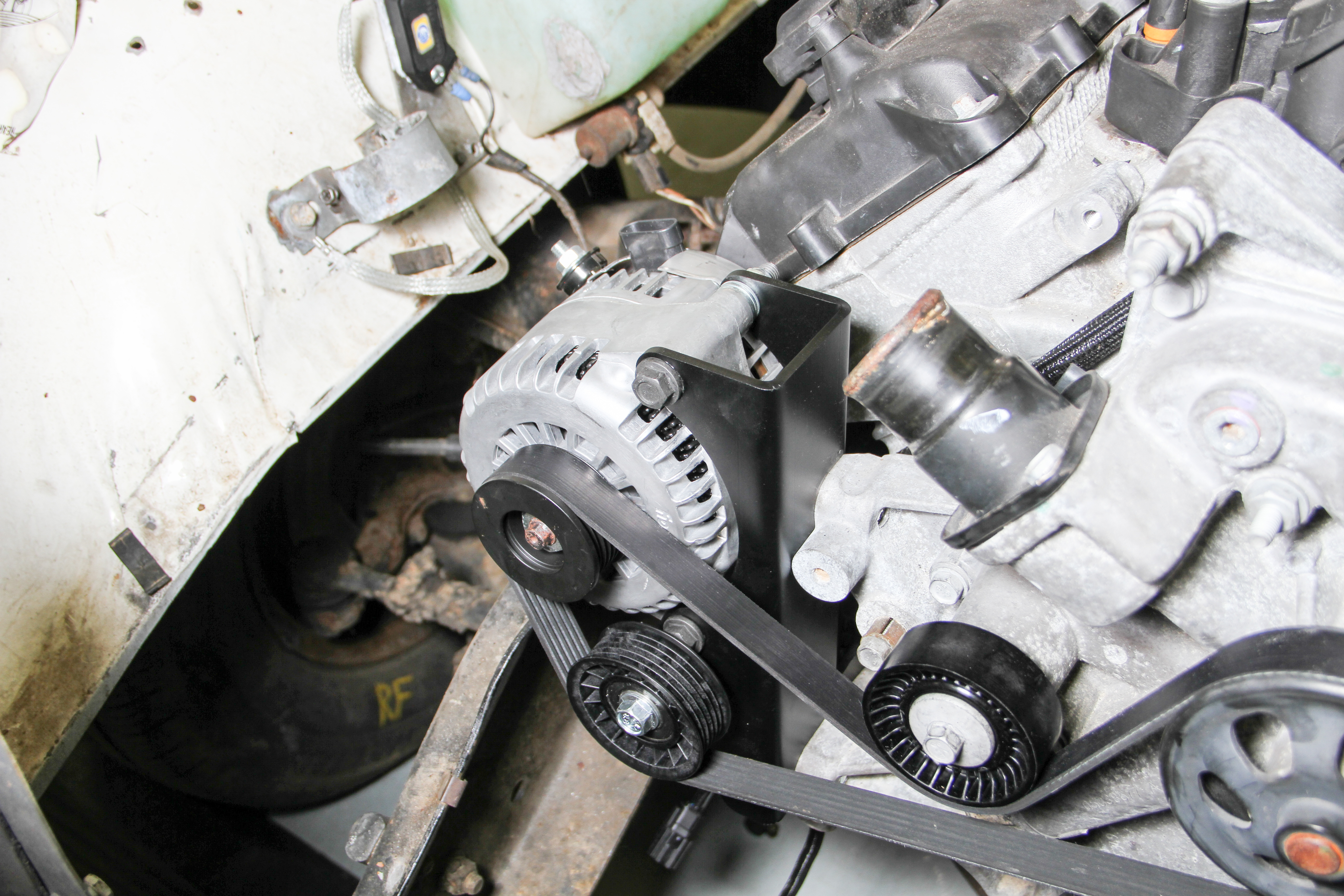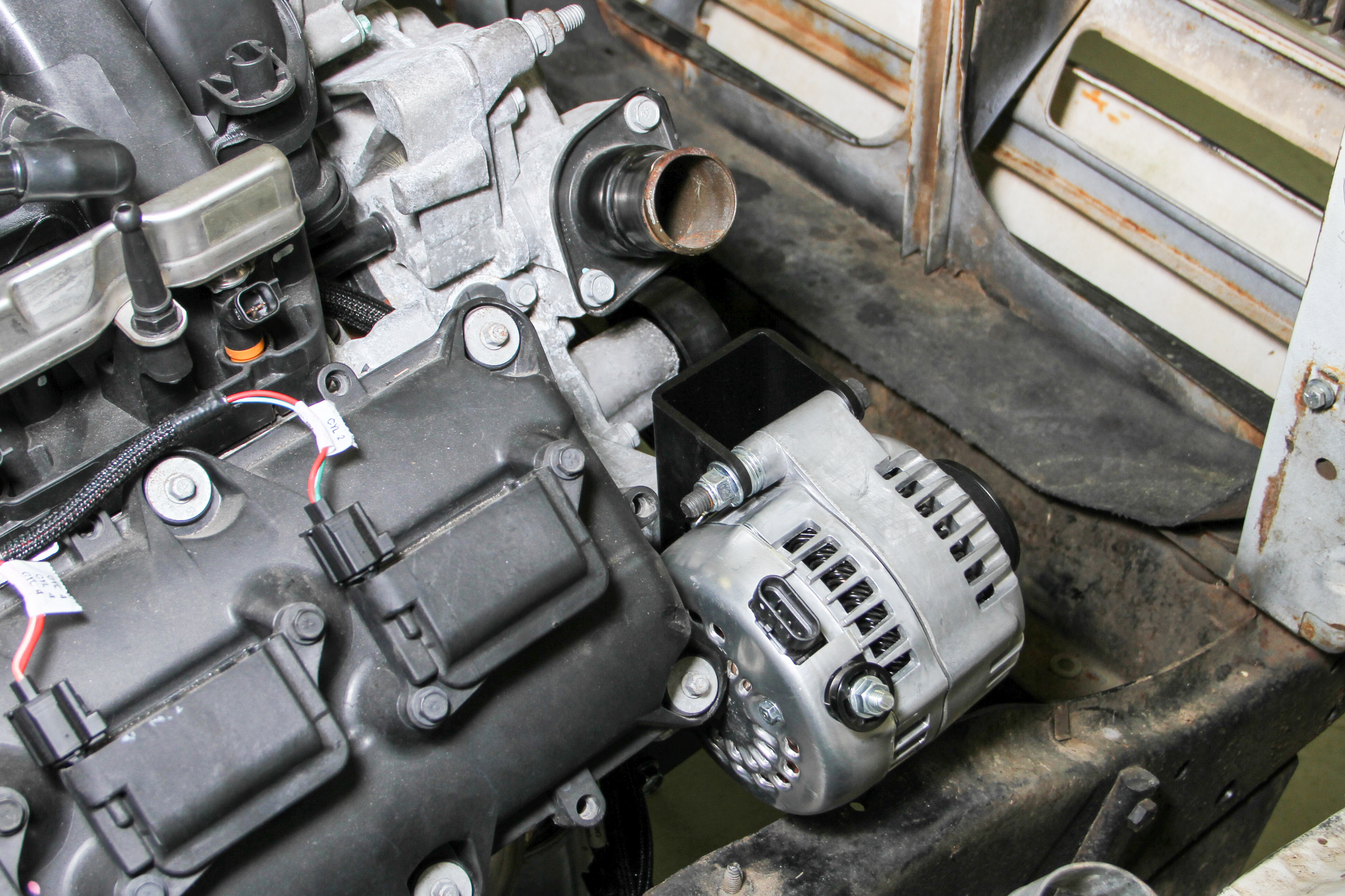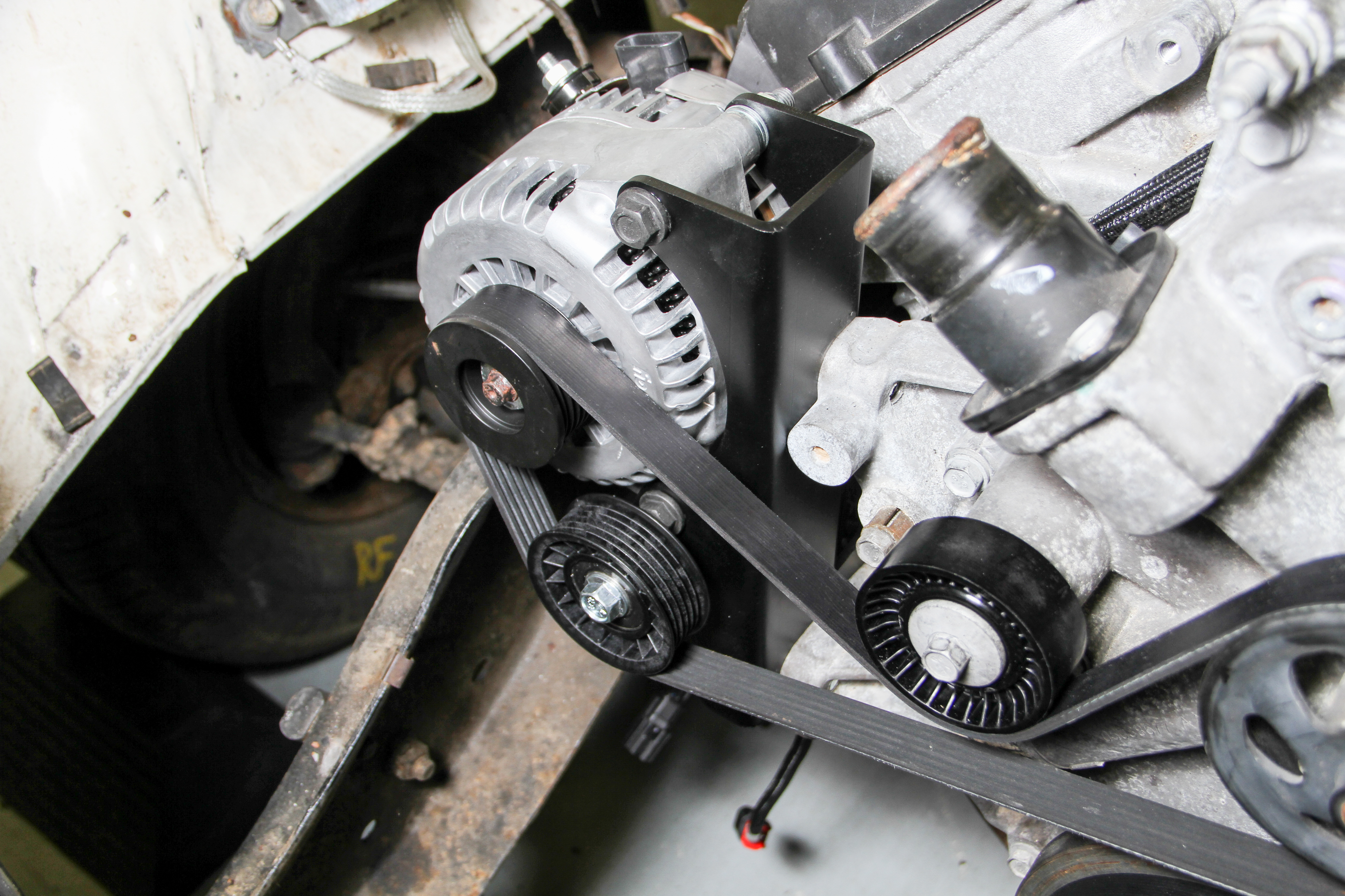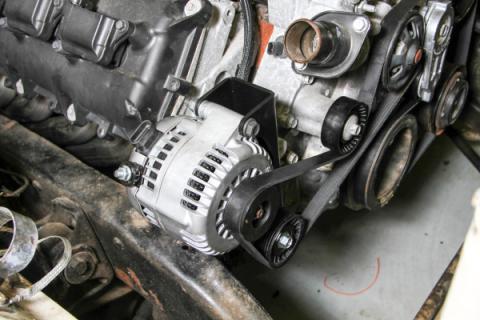 - Mounts the Alternator low & Inward for Added Clearance in Gen III Hemi Swaps