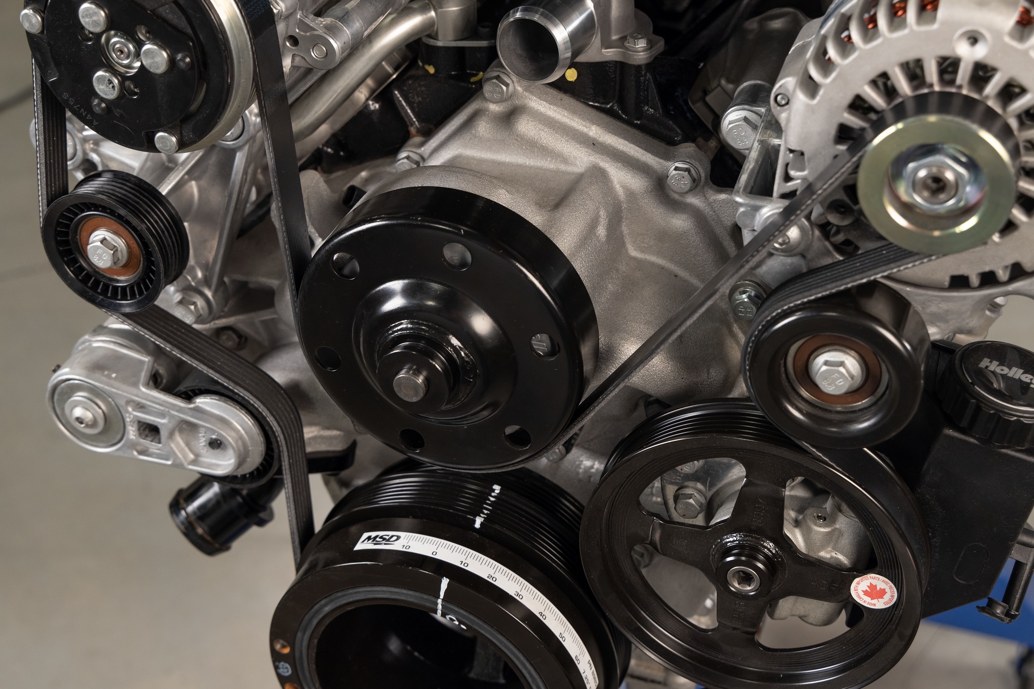 - This high-mount accessory drive has all accessories pulled up and in tighter than other options