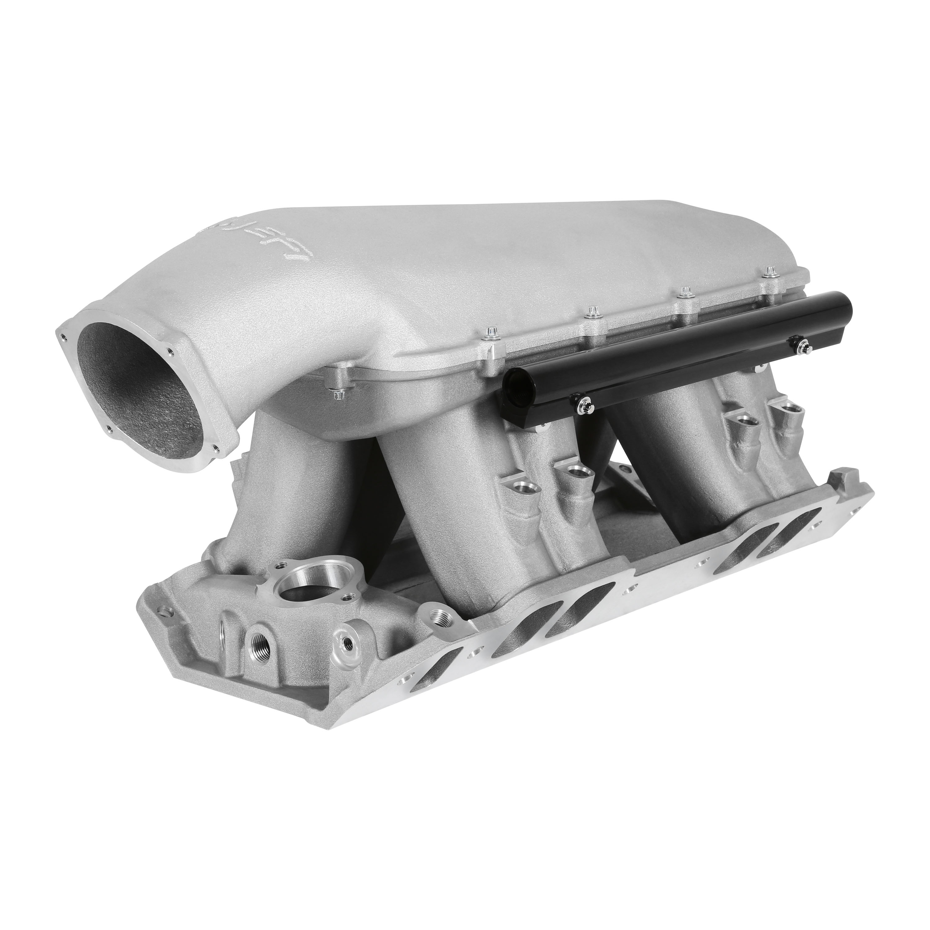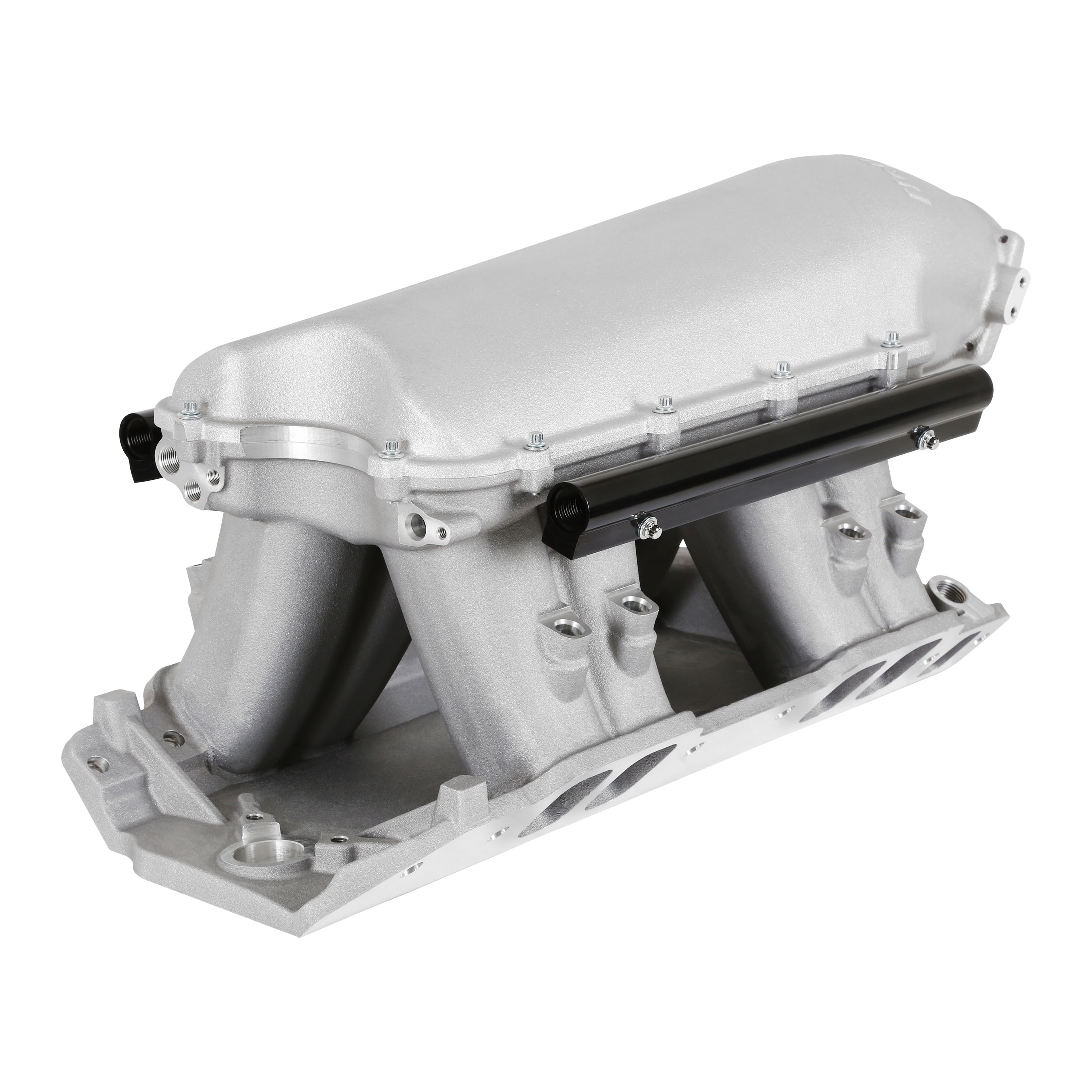 Hi-Ram intake manifold with 105mm LS GenIV type throttle body flange type plenum top. A -10AN fuel rail kit is included.