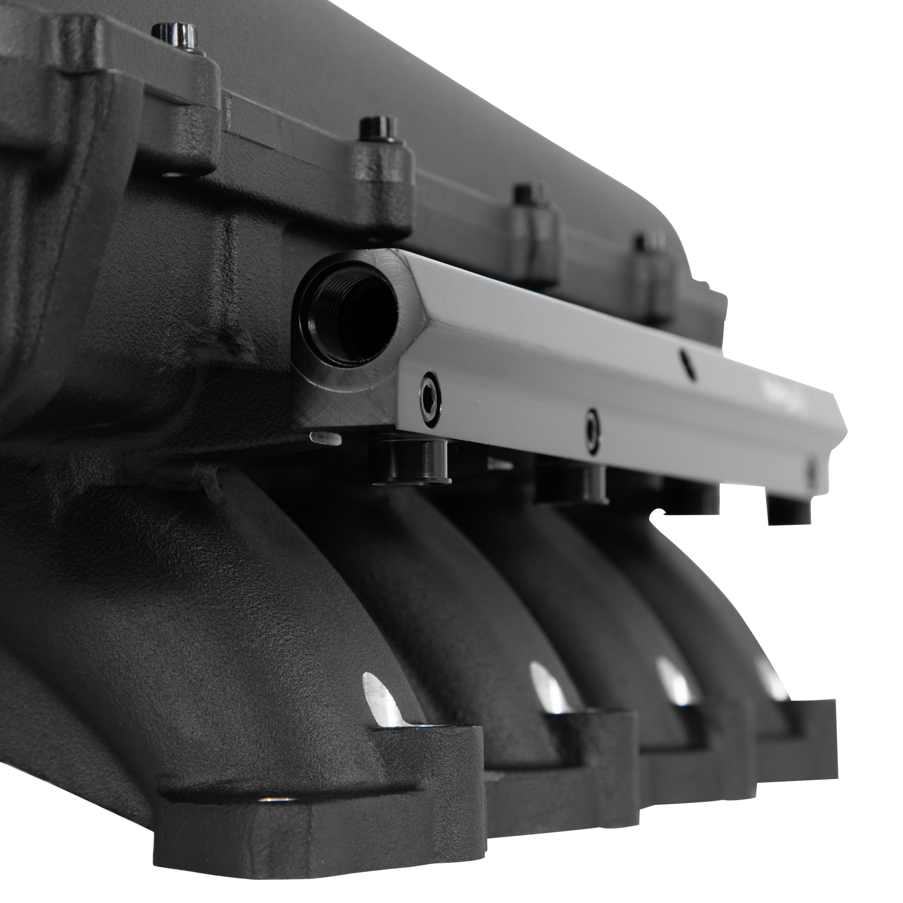 - Fuel rails with -8AN ports and dual 1/8 NPT accessory ports for gauges or Gen 3 direct injection fuel line hookup