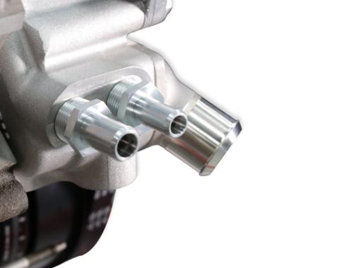 - Shortened top outlet nipple for more radiator hose turns and routing room
