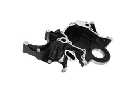 - Bracketless accessory mounting integrated with supplied front timing cover assembly