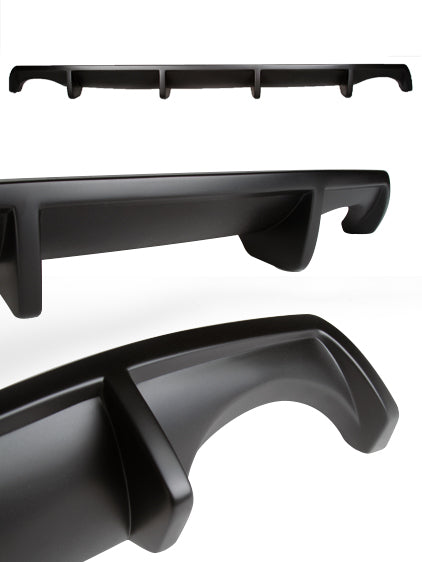 Our rear diffuser is available either unpainted or painted matte black. The painted version arrives ready to install, or the unpainted version can be painted to the color of your choice