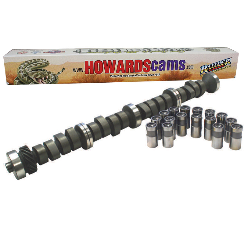 Big Daddy Rattler 1963 - 1977 Ford 352-428 Hyd 2400 to 5600 Cam & Lifter Kit All Howards Cams use the highest-grade race quality cores available. All hydraulic and mechanical flat tappet camshafts are 100% Rockwell checked and Parkerized to ensure the highest quality control standards available anywhere. Howards Cams are manufactured on dedicated high precision CNC cam grinding machines. Most Howards Cams are packaged and shipped in our unique, hard, high impact plastic reusable cases. This ensures that the high quality camshaft that went into the case comes out in the same condition, when delivered, as when it was packed. Lift: .548 / .548, Duration @ .050: 243 / 251, Centerline: 103, Big Daddy Rattler, Rough idle, Pro street or street/strip, Needs 9.5:1+ compression & 2800+ stall converter.