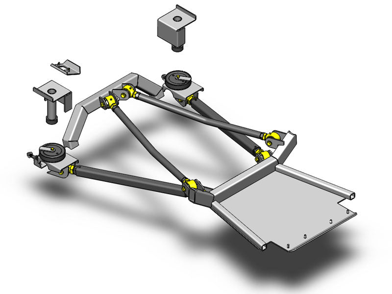 Clayton Off Road Inc. coil conversion long arm upgrade kits is the ultimate XJ rear suspension setup. This kit is designed to build off of our front XJ long arm cross member. This kit includes