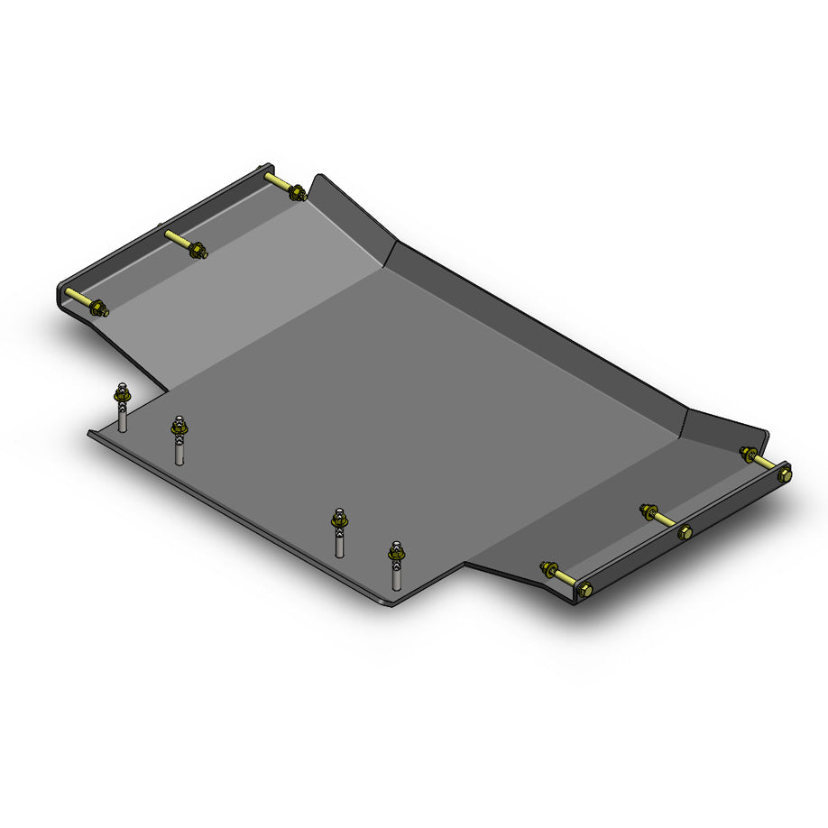 Our ZJ 1/4 flat skid plate was designed as an addition to our Clayton Off Road Inc. suspension lift kits. It bolts onto the front 3 piece cross member using counter sunk allen head bolts, and requires our unibody frame rails to be welded in according to the new locations.